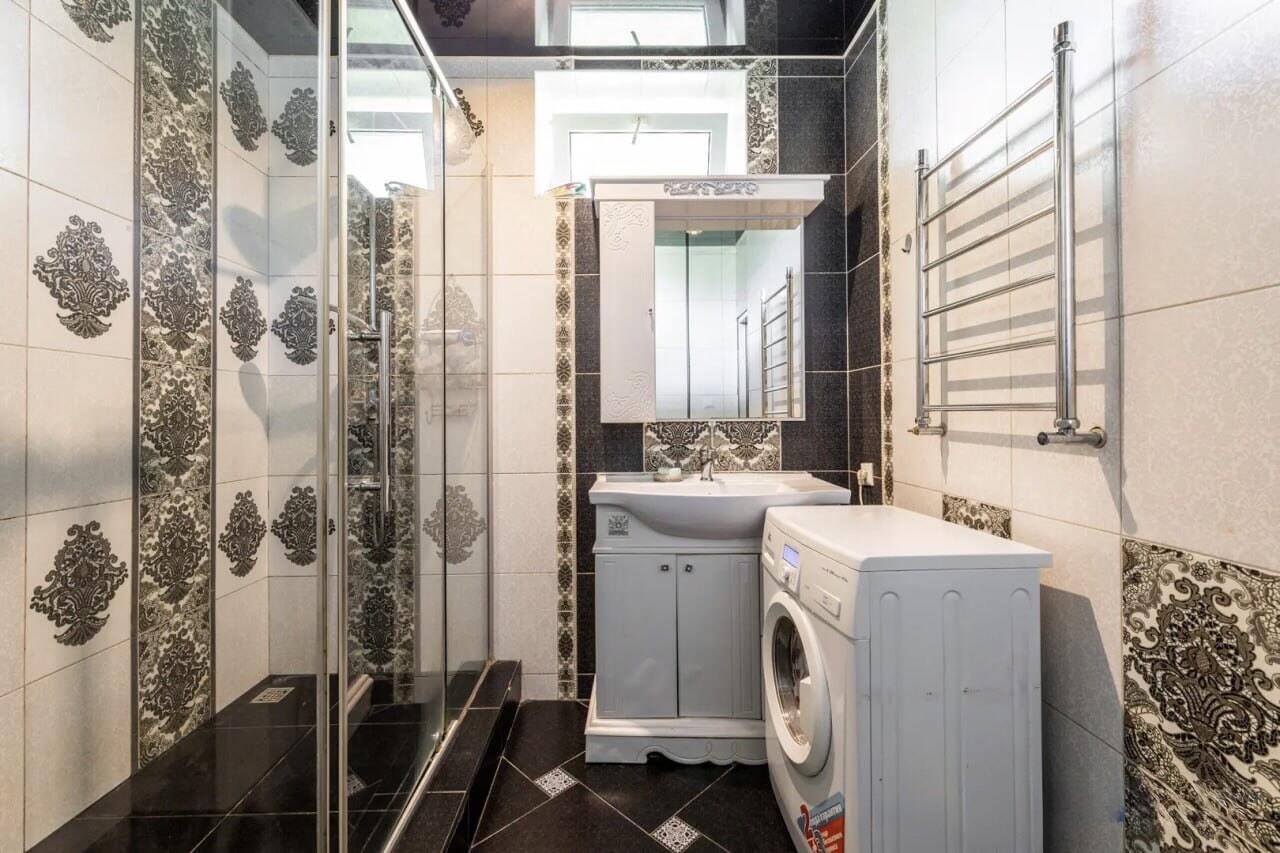 ПВХ стеклопакеты. Санузлы облицованы кафельной плиткой, установлены необходимая сантехника и мебель. Встроенная кухня с техникой: варочная панель, духовой шкаф, вытяжка, посудомоечная машина, холодильник. Спальни укомплектованы мебелью.
