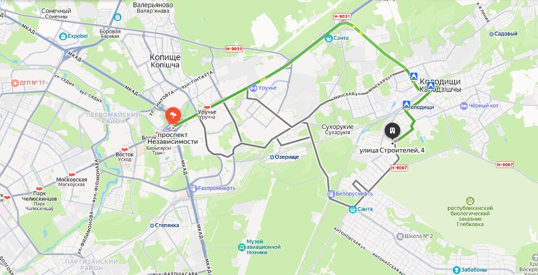 Остановка общественного транспорта в шаговой доступности, регулярно курсируют несколько автобусов, ходят маршрутные такси и электрички. До станции метро "Уручье" 15 минут на автомобиле!