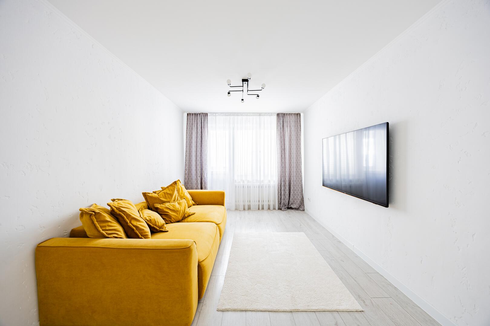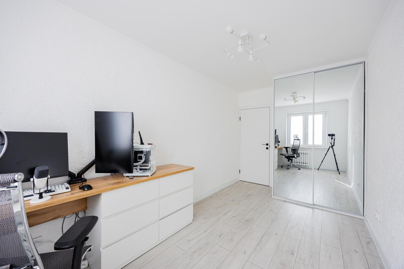 Вся мебель и техника остаются:– кухня с фурнитурой Blum– посудомоечная машина, микроволновка, холодильник– фильтр для воды– телевизор 70’’ в гостиной и 55’’ в спальне– кровать 2×2 с новым матрасом– шкаф-купе, диван– стиральная машина
