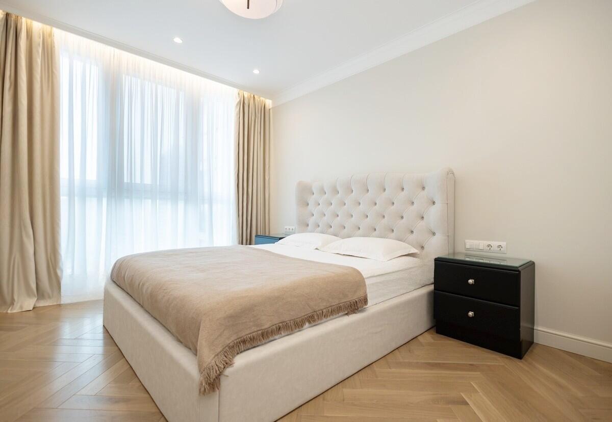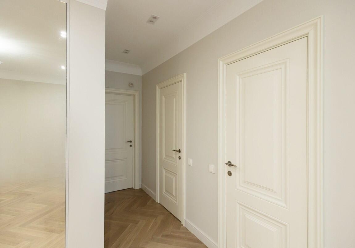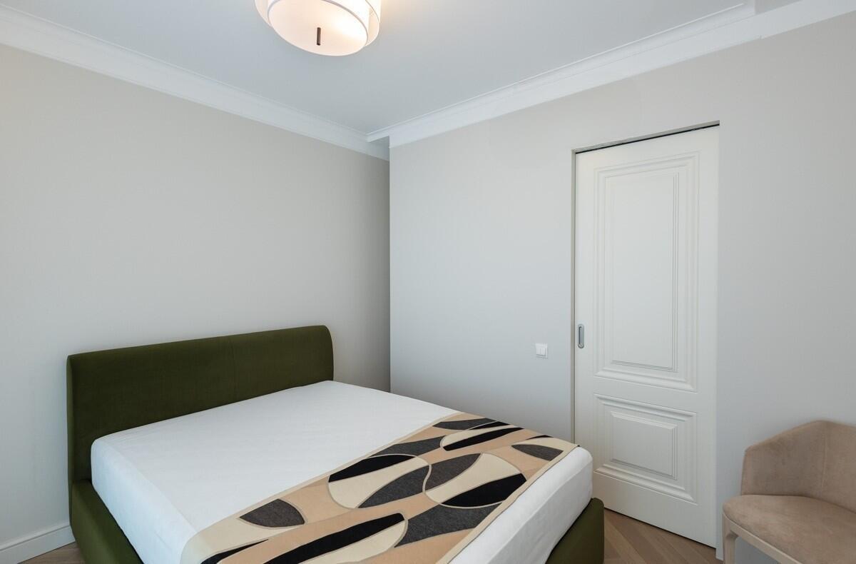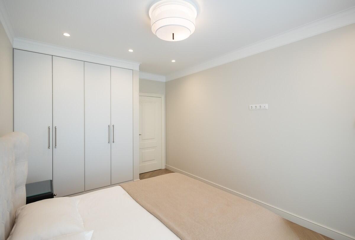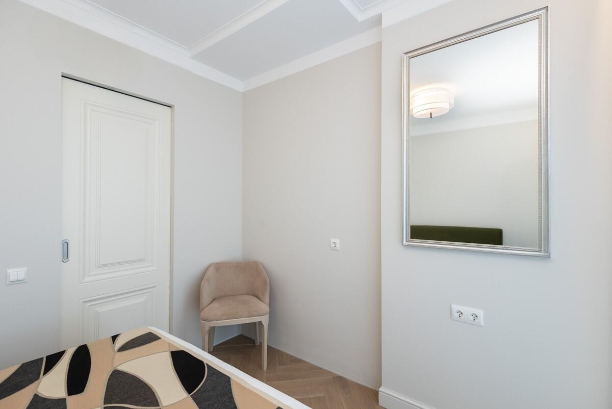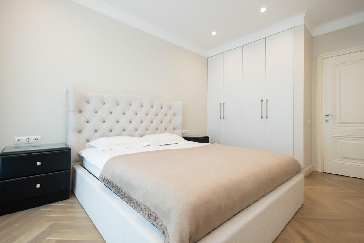 Потолки и стены окрашены, в гостиной и спальнях на полу паркет Tarwood, в кухне полы из плитки с подогревом. Современная техника: встроенный духовой шкаф, индукционная панель, стиральная и сушильная машины Electrolux (производства Италия). Кухонный фартук из испанского керамогранита под оникс KERAMA MARAZZI, столешница из кварцевого агломерата. Лоджия из кухни. Санузел раздельный с ванной Villeroy & Boch, со встроенным биде Boheme. Мебель на заказ из надёжных качественных материалов, кровати с подъёмными механизмами и нишами для хранения. Встроенный зеркальный шкаф в прихожей и большой гардероб в спальне, вместят все ваши вещи.