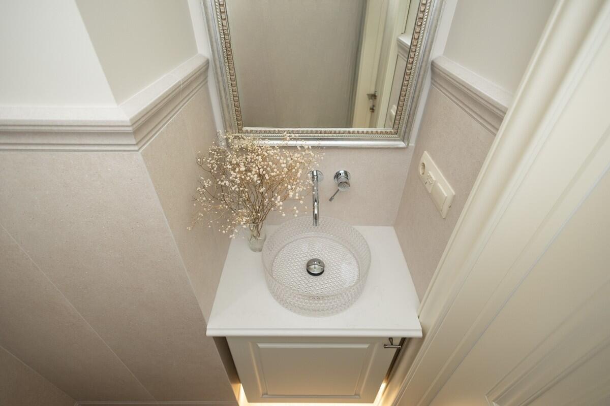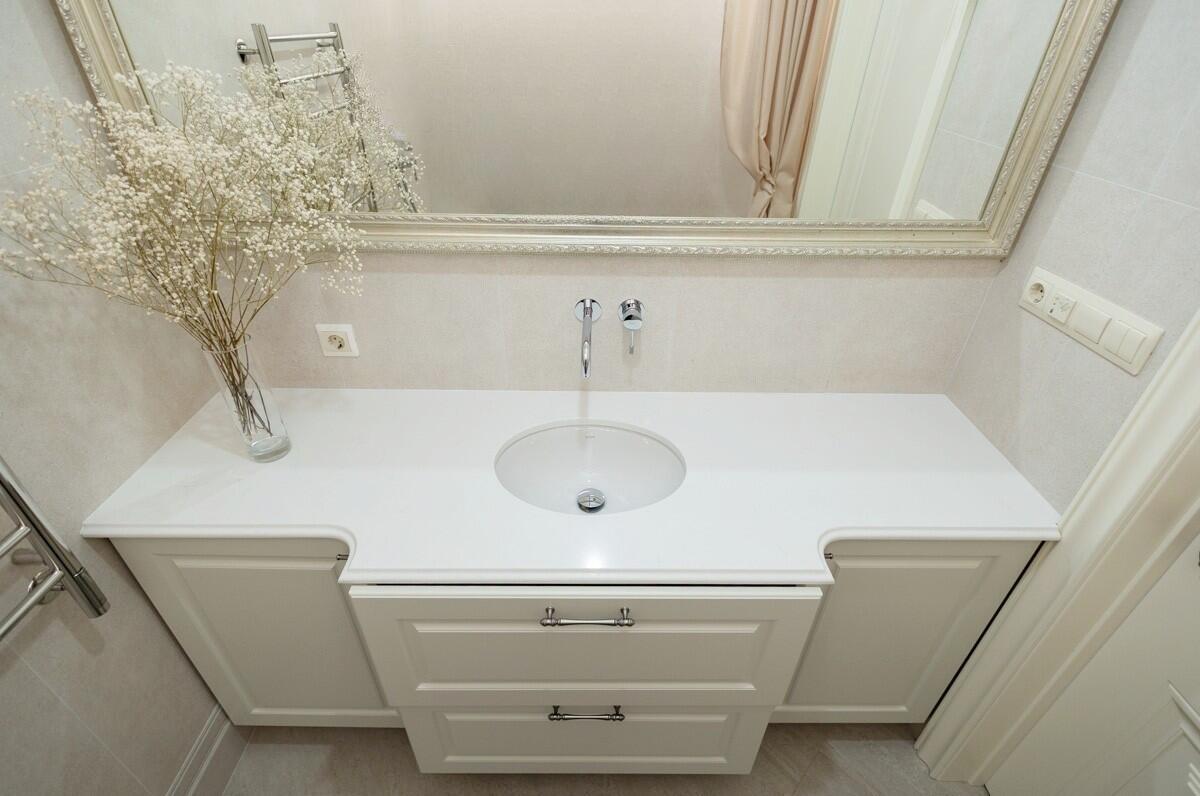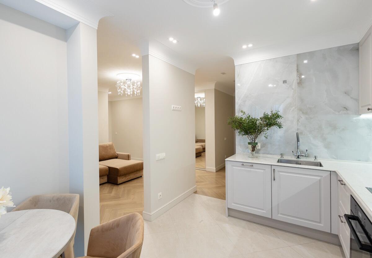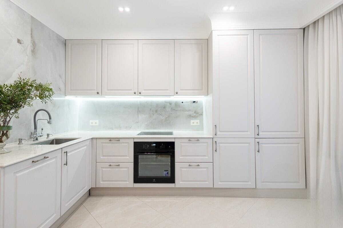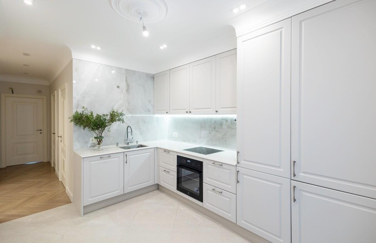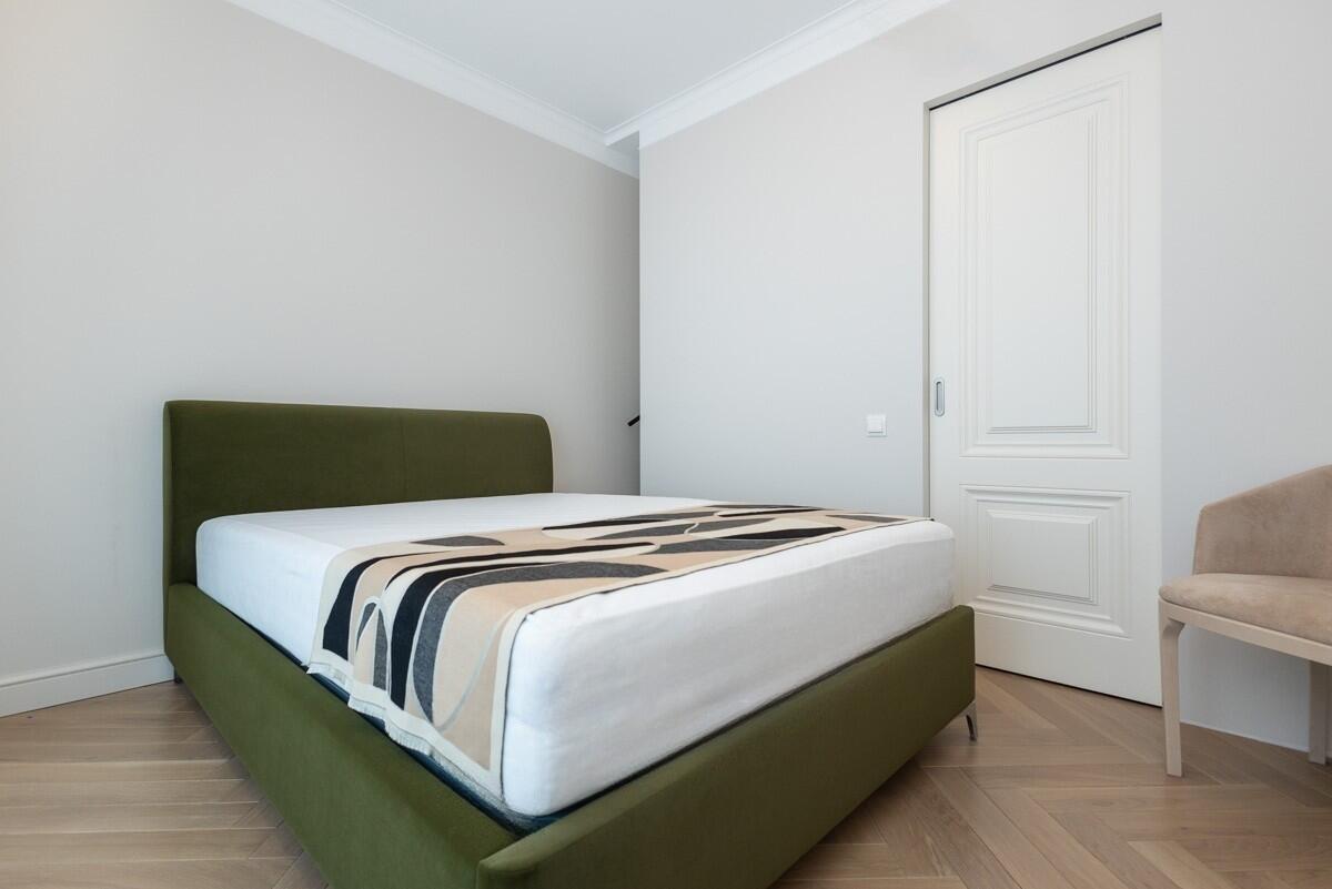 Потолки и стены окрашены, в гостиной и спальнях на полу паркет Tarwood, в кухне полы из плитки с подогревом. Современная техника: встроенный духовой шкаф, индукционная панель, стиральная и сушильная машины Electrolux (производства Италия). Кухонный фартук из испанского керамогранита под оникс KERAMA MARAZZI, столешница из кварцевого агломерата. Лоджия из кухни. Санузел раздельный с ванной Villeroy & Boch, со встроенным биде Boheme. Мебель на заказ из надёжных качественных материалов, кровати с подъёмными механизмами и нишами для хранения. Встроенный зеркальный шкаф в прихожей и большой гардероб в спальне, вместят все ваши вещи.