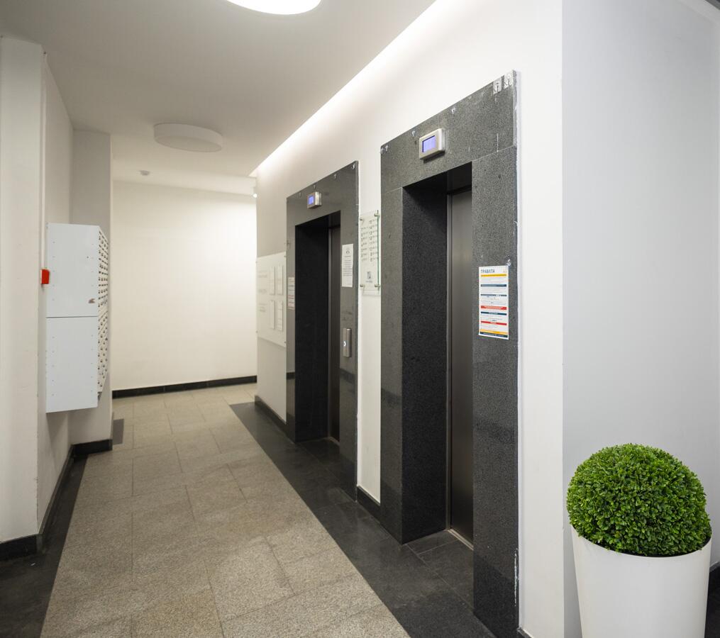 В доме сквозной подъезд, стильное дизайнерское лобби с санузлом, предусмотрено место для консьержа и зоны отдыха. Подъезд с видеодомофоном, камерами наблюдения, колясочной. Скоростные бесшумные лифты импортного производства.