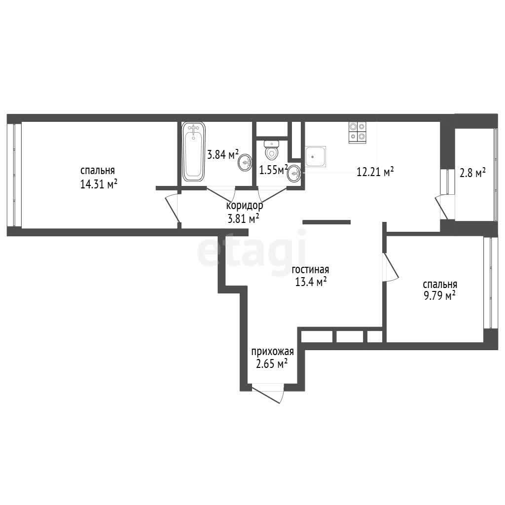Площадь квартиры по СНБ-64.7 кв. м. Архитектурное решение обеспечивает максимально рациональное использование пространства в квартире. Раздельные спальни на разные стороны создадут комфортную атмосферу и личное пространство.