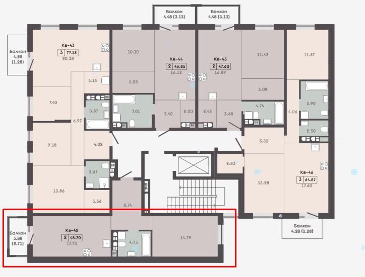 Площадь48.7 м2