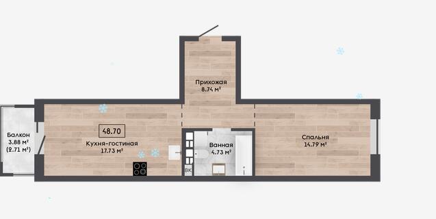 Общая площадь 48.7 м²