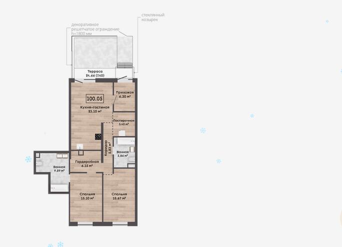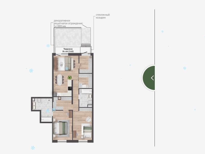 Квартира с террасой - 24,66м2.