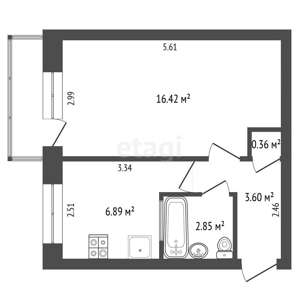 Площадь по СНБ – 30,92 кв.м. Жилая – 16,42. Кухня – 6,89.