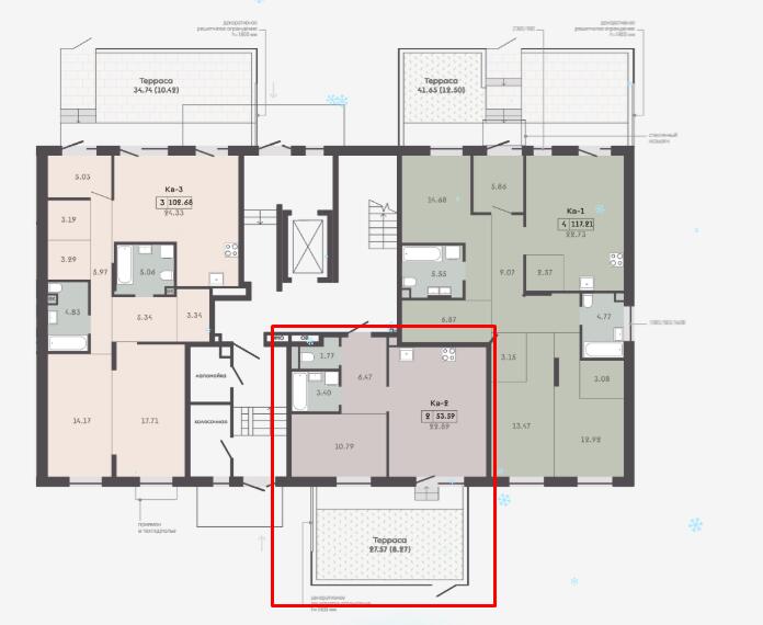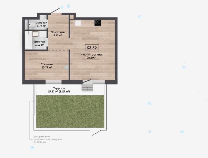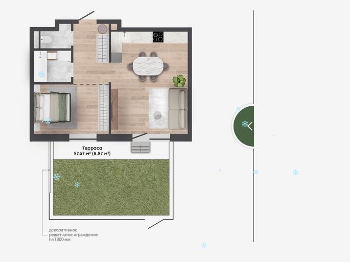 Квартира с террасой на 1 этаже - 27,57м2.