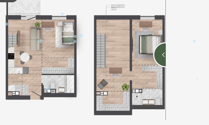 Продуманные планировки: Уникальные квартиры с личными террасами и участками на первом этаже, а также квартиры с мастер-спальнями, гардеробными и кабинетом. Кроме того, для каждой квартиры предусмотрена кладовая в техническом подполье, а для некоторых — кладовые на этажах.