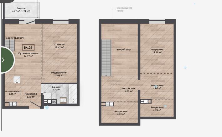 Квартира на последнем этаже, мансардная.