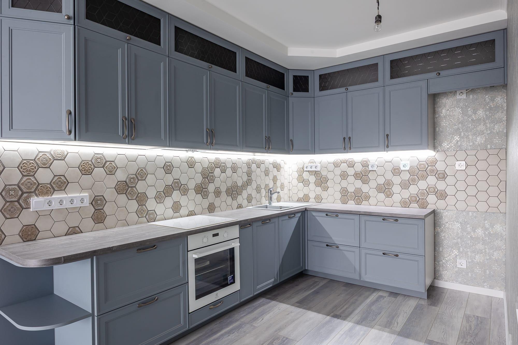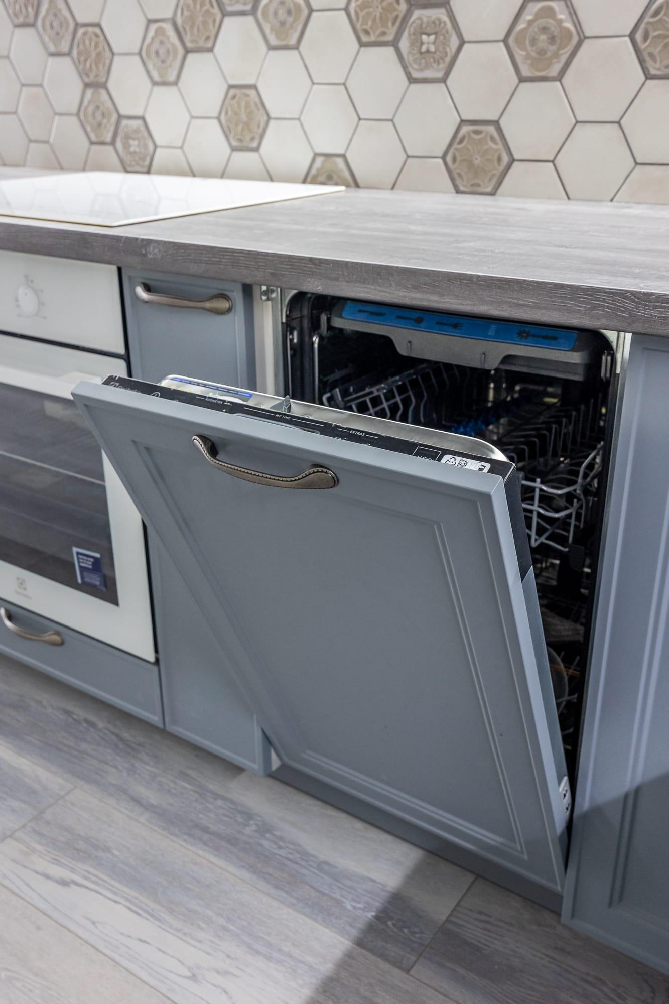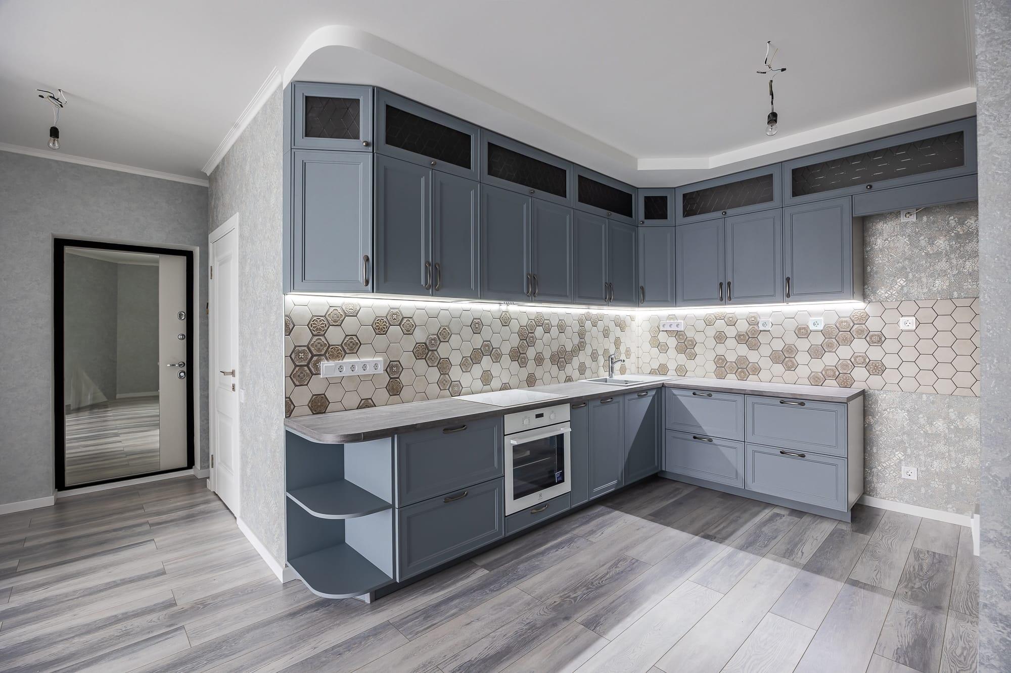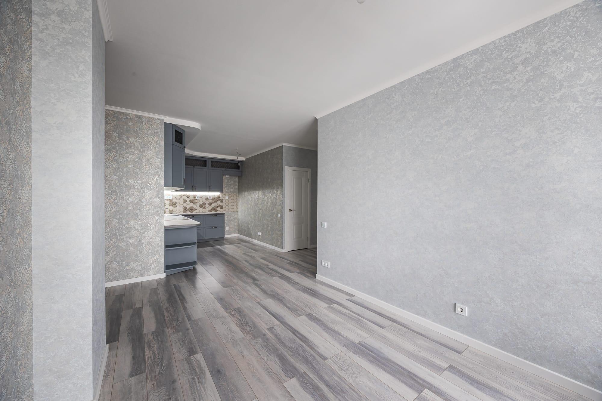 В квартире выполнена аккуратная отделка с использованием качественных материалов.Кухня изготовлена на заказ: фасады из крашеного МДФ, вся фурнитура — Blum (Австрия), обеспечивающая плавную и надёжную работу механизмов.