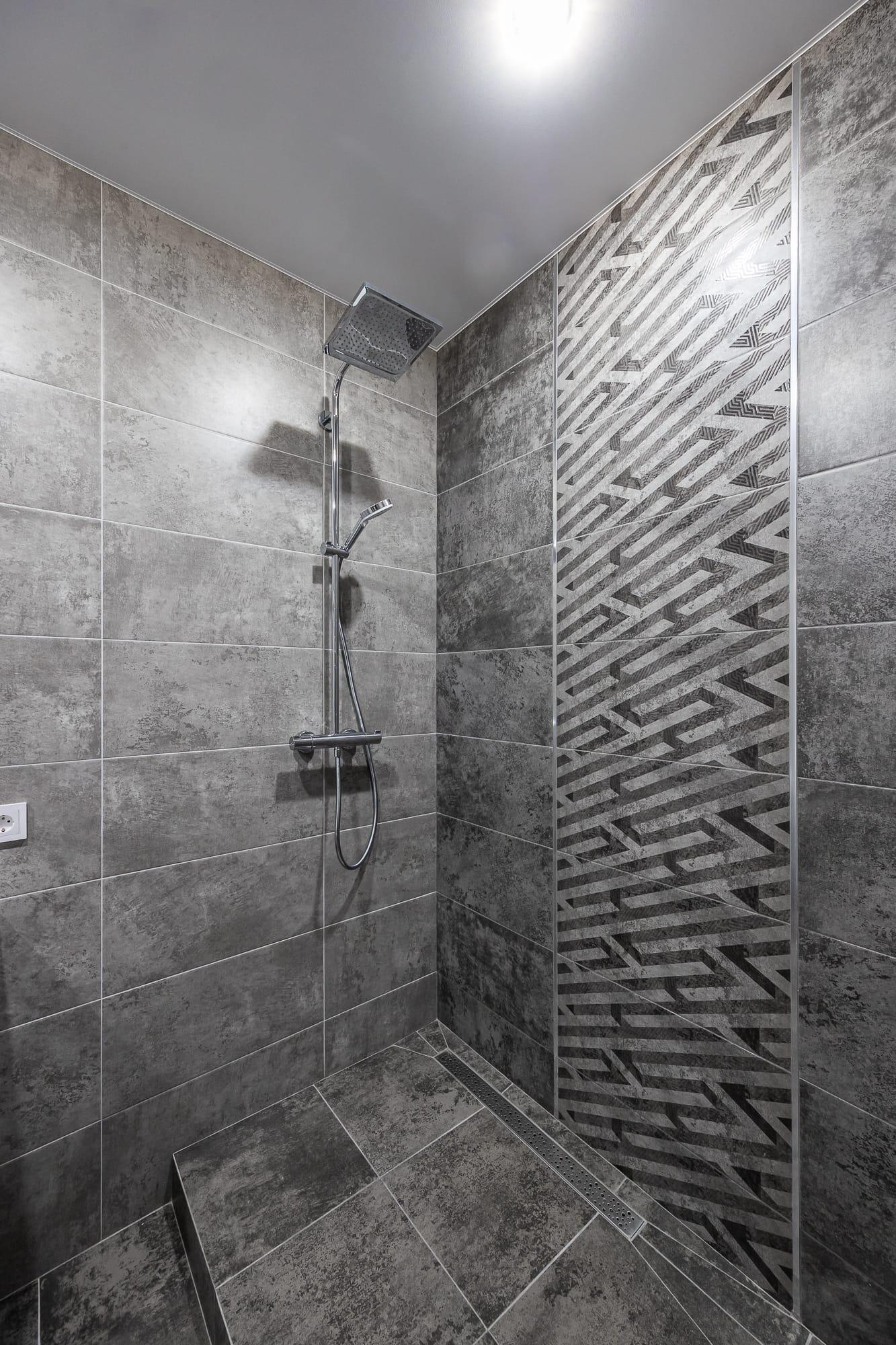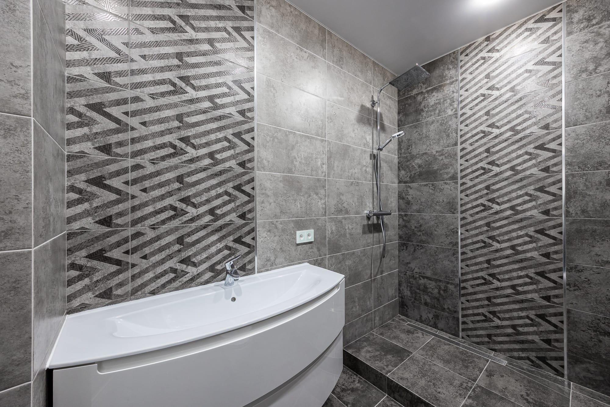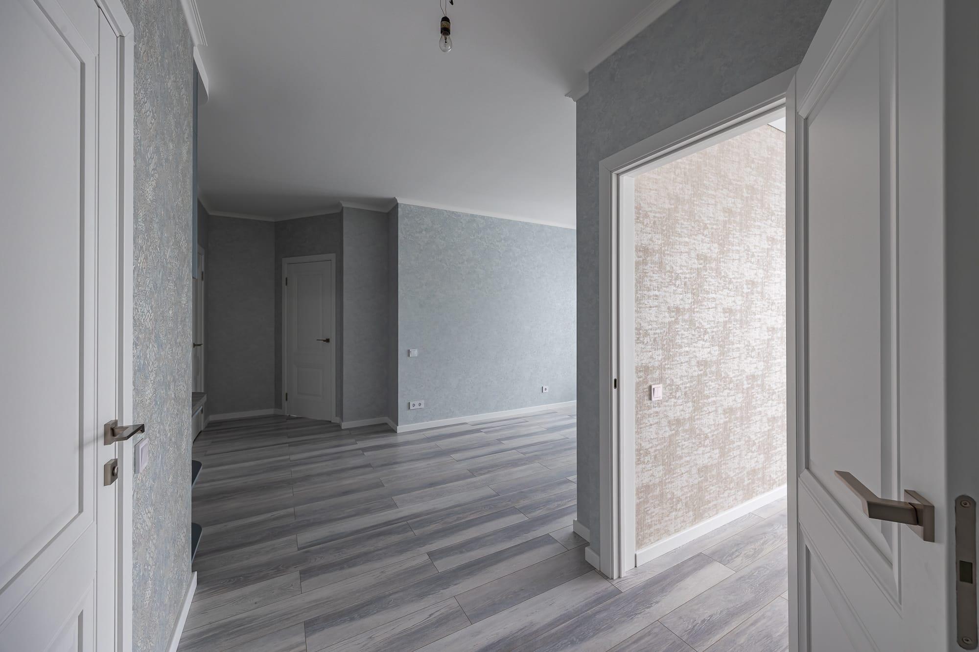 На полу — ламинат и плитка, установлены напольные плинтусы из крашеного МДФ.