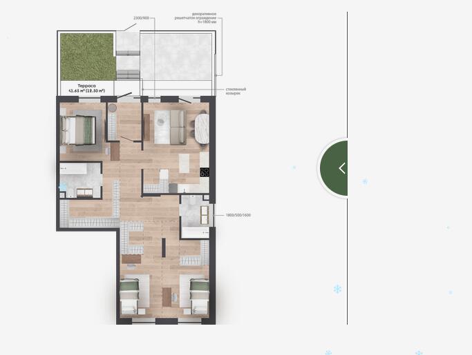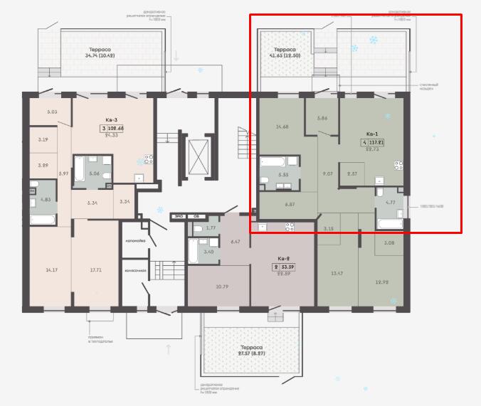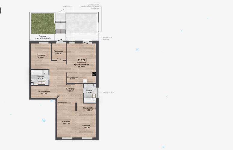 Квартира с террасой на 1 этаже - 41,65 м2.