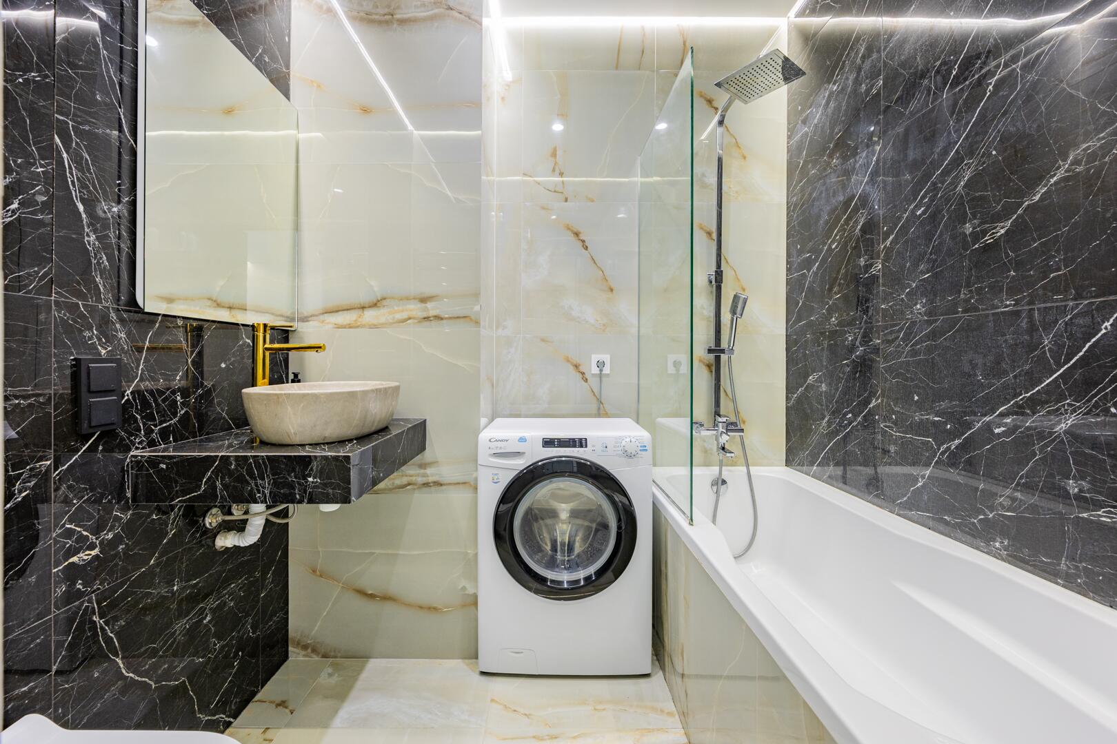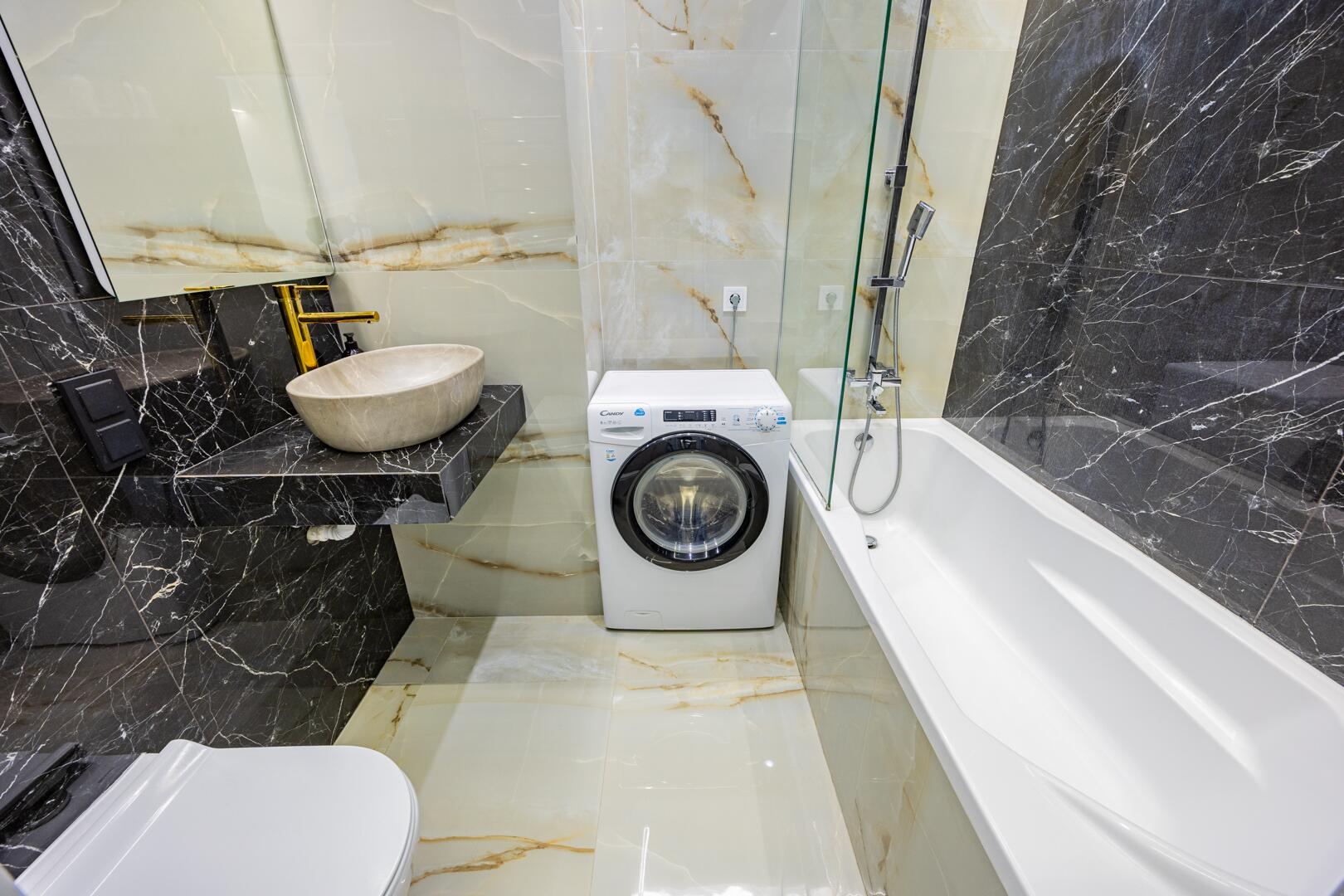 В санузле итальянская плитка, сантехника премиального класса, бойлер.