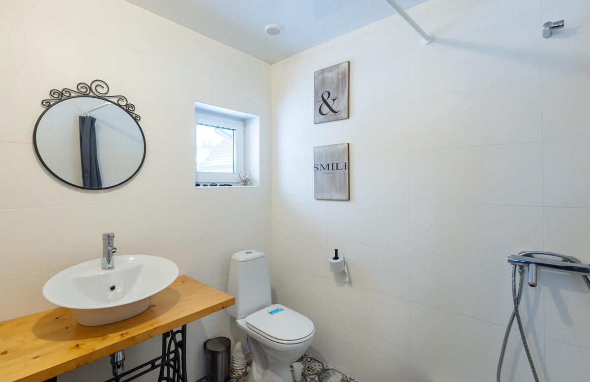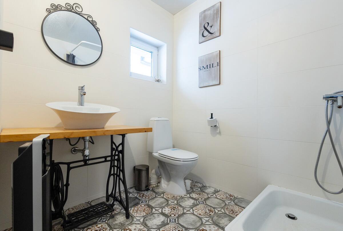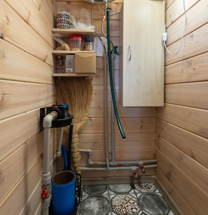 • Пол — ламинат 33 класса (Польша), санузел и бойлерная — плитка. Ванная дополнительно изолирована ЦСП-плитой.