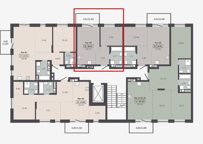 Площади квартир от 37,62 до 110,90 кв.м — от студий до просторных 3-комнатных квартир.