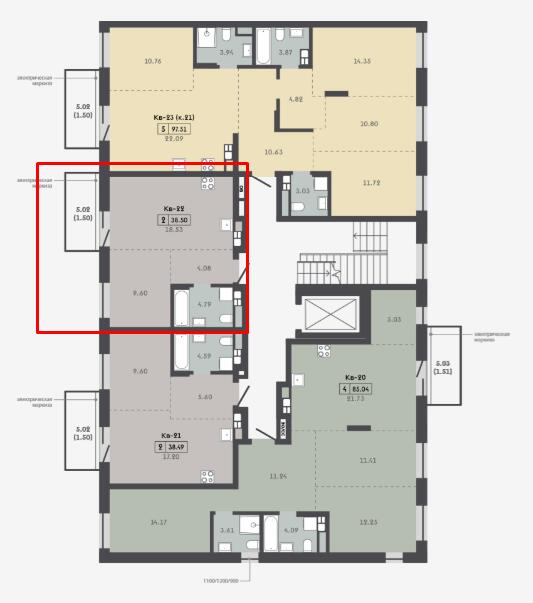 Площади квартир от 37,62 до 110,90 кв.м — от студий до просторных 3-комнатных квартир.