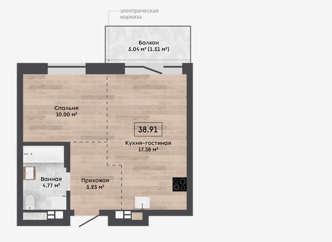 Общая площадь 38.91 м²