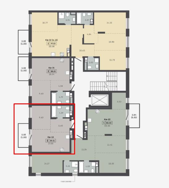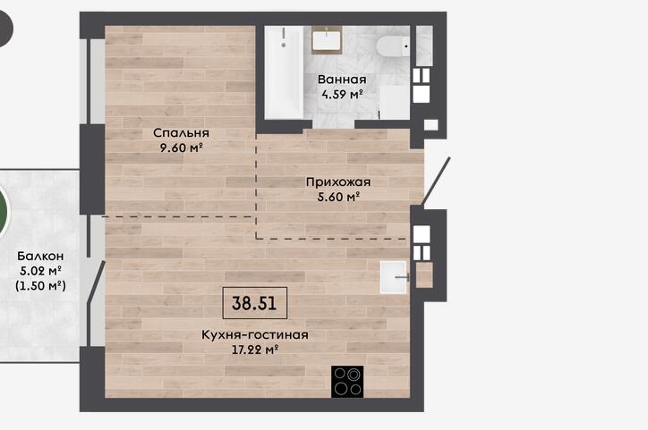 Общая площадь 38.51 м²