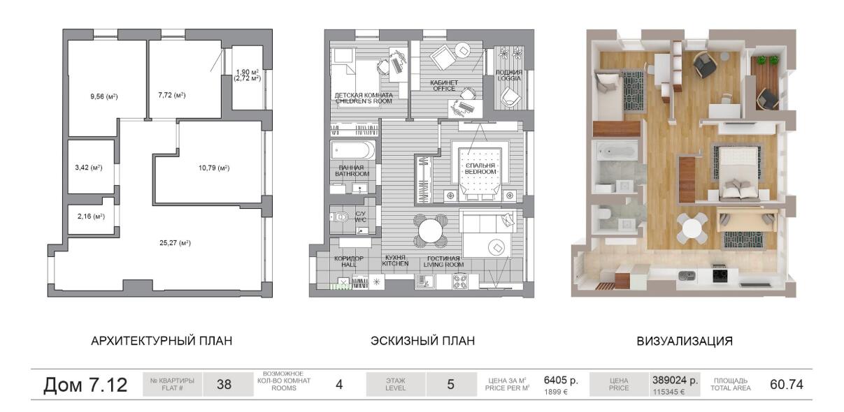 Площадь60.74 м2