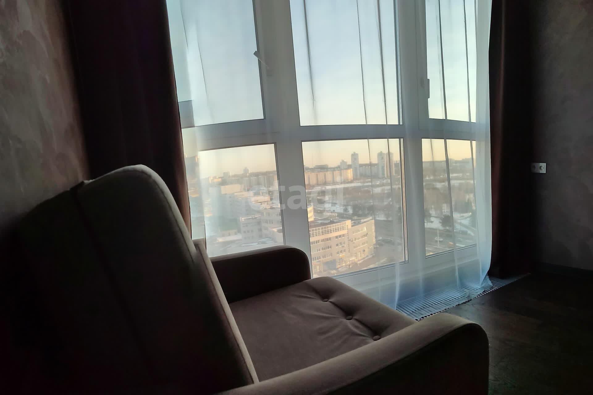 - отдельная уютная спальня 12,3 м2 с встроенным, вместительным шкафом, на полу паркетная доска, кресло кровать, выход на лоджию с панорамным шикарным видом на БЦ ПОРТ и парк Уручье