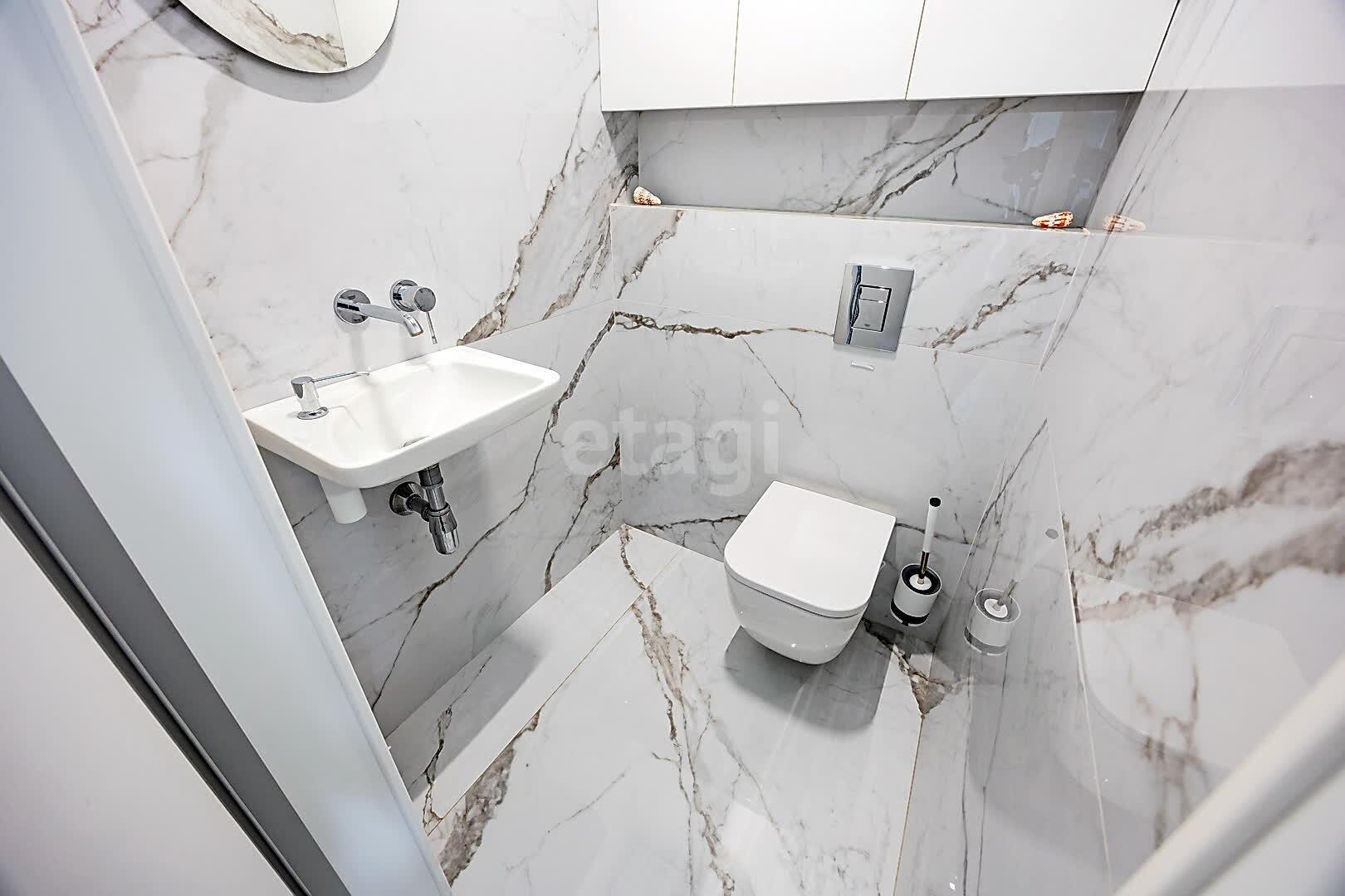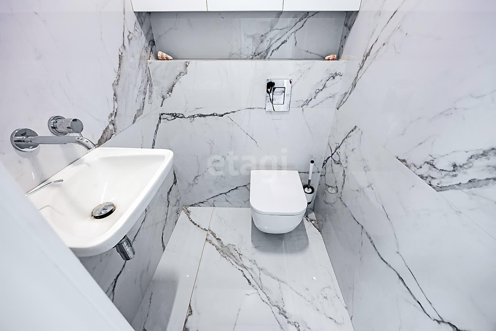 - 1-й санузел оборудован инсталляцией Grohe, подвесной унитаз Lavinia и аккуратной раковиной, места хранения бытовой химии в наличии и в доступе