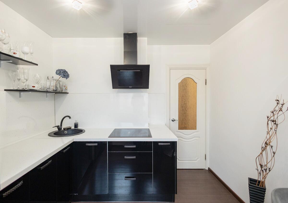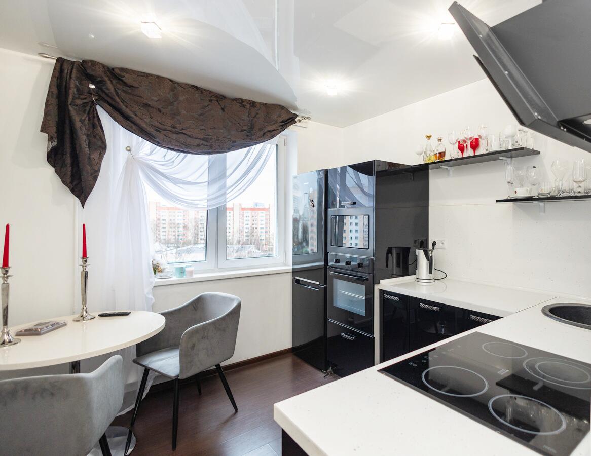 · Обустроенная кухня 8,8 м2 со встроенной техникой (холодильник, посудомоечная машина, микроволновка, вытяжка, варочная панель, духовой шкаф) и мебелью.