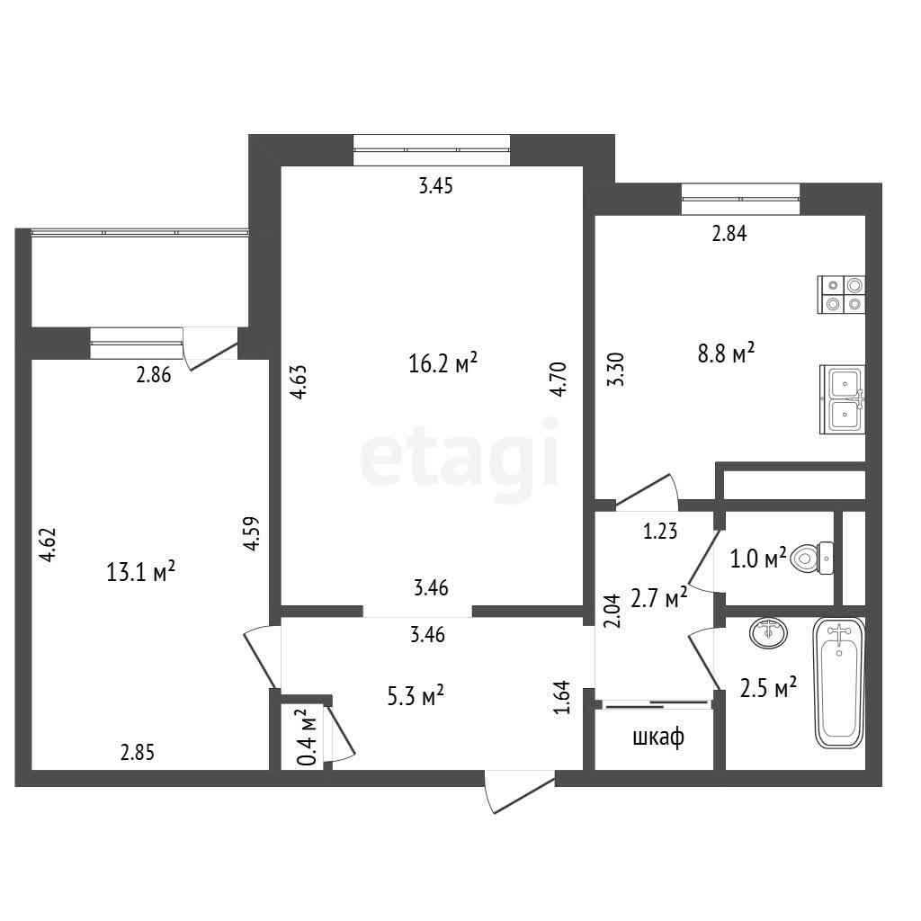 · Раздельный сан.узел (остается стиральная машина). Встроенные шкафы.