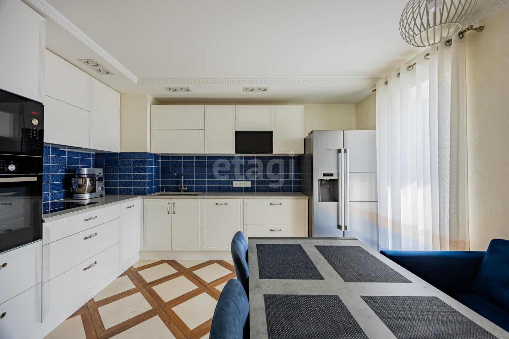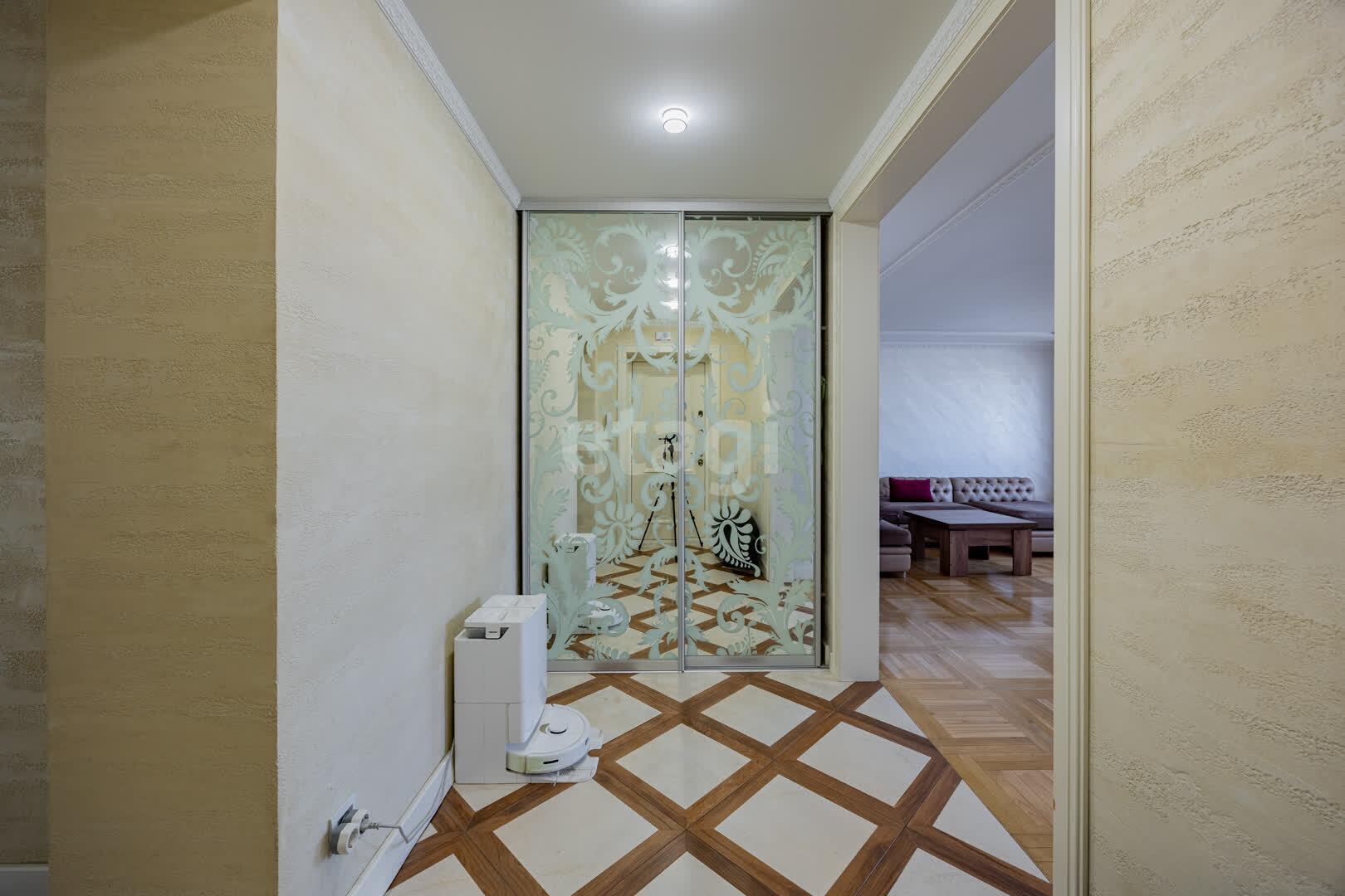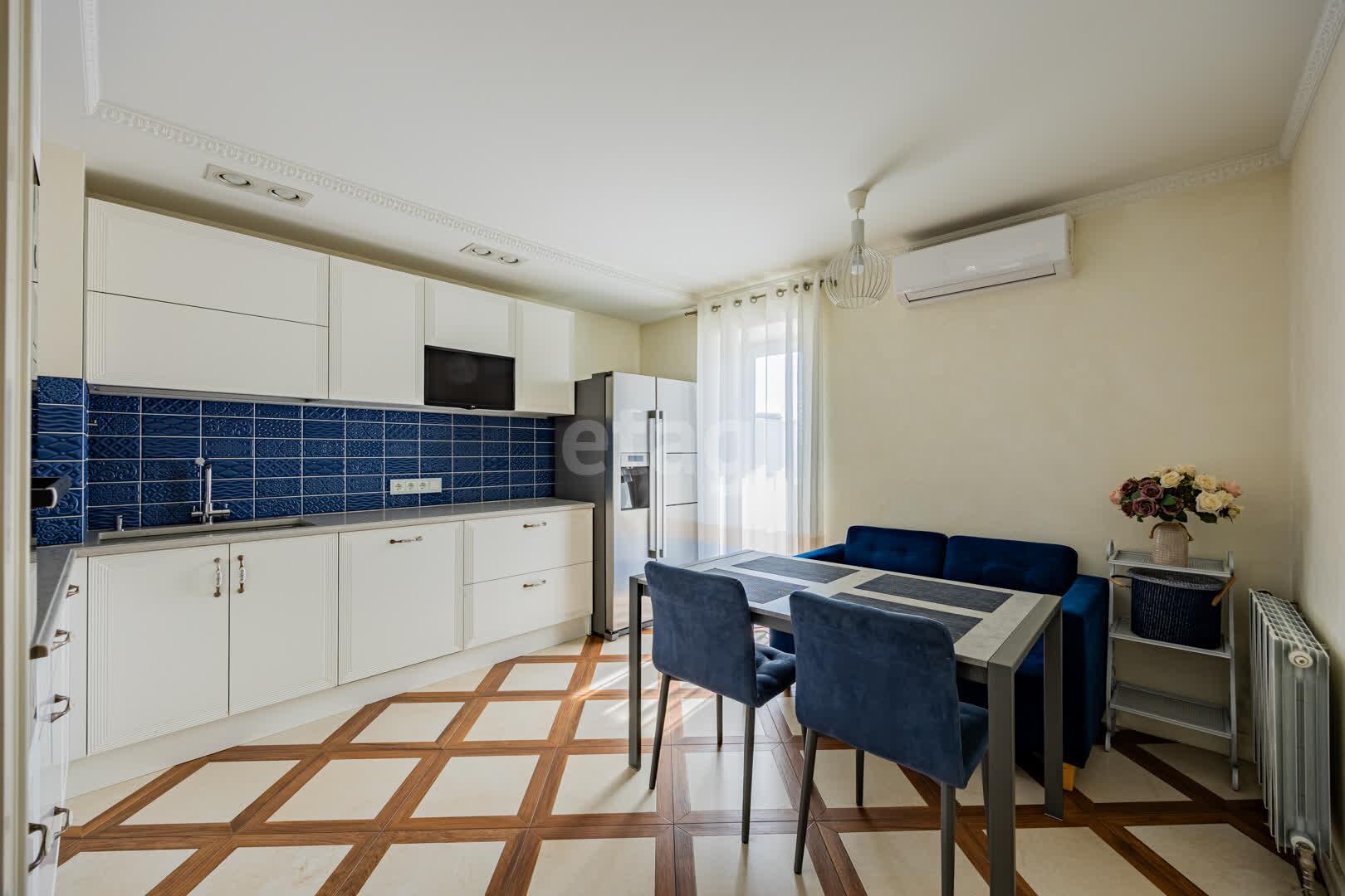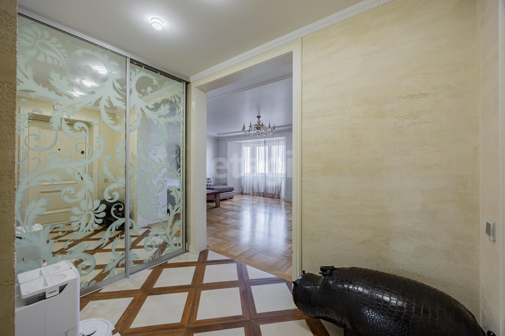Кухня(13.9 м2: Просторная зона для семейных ужинов). Установлен кухонный гарнитур из МДФ со встроенной техникой «BOSСH», а рабочая зона укомплектована долговечной каменной столешницей и столешница из гранита. Система фильтрации воды. Для вашей безопасности установлена система аквастоп по квартире. С выходом на первую лоджию. Четыре комнаты: Гостиная/Зал (29,1 м2): Впечатляющий масштаб. Центром интерьера является роскошный диван Versace, подчеркивающий статус жилья, Светлая спальня(18,5 м2), Детская №1(13,3 м2), Детская №2/кабинет (13,4 . С выходом на вторую лоджию. Комфорт для семьи: Два санузла(1,7 и 9,8 м2) . Санузлы облицованы плиткой, установлена испанская сантехника Roca, бойлер на 80 литров. В вашем распоряжении полноценная гардеробная (4.6 м2), где с комфортом разместится весь семейный гардероб, и отдельная кладовая (1.6 м2) для бытовых мелочей, спортивного инвентаря или сезонных вещей. Вся мебель делалась под индивидуальный заказ. Премиальная Вся мебель в доме выполнена по индивидуальному заказу: каждая деталь, от фасадов до фурнитуры, подбиралась с безупречным вкусом и вниманием к эргономике. Это позволило идеально использовать каждый сантиметр пространства, создав гармоничный и единый стиль, который невозможно повторить. отделка: Стены украшает изысканная венецианская штукатурка, создающая неповторимую атмосферу. На полу — натуральный паркет, межкомнатные двери из массива. Особое внимание уделено деталям: по всему дому установлены надежные подоконники из каменного гранита. Полы: коридор и кухня - плитка, в комнатах - паркет.