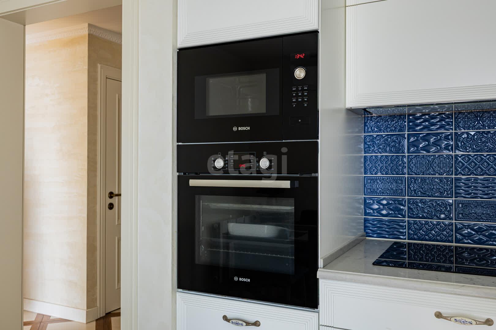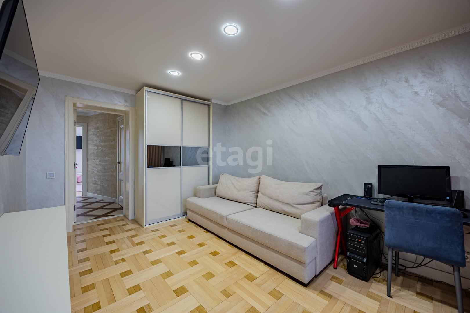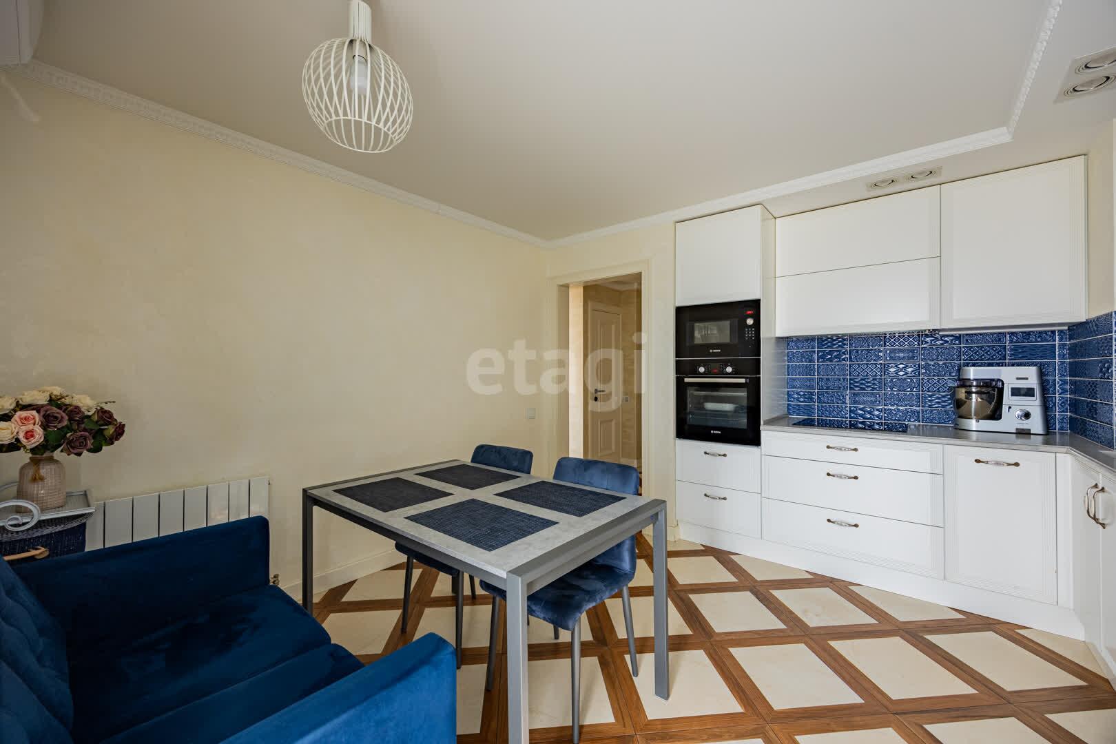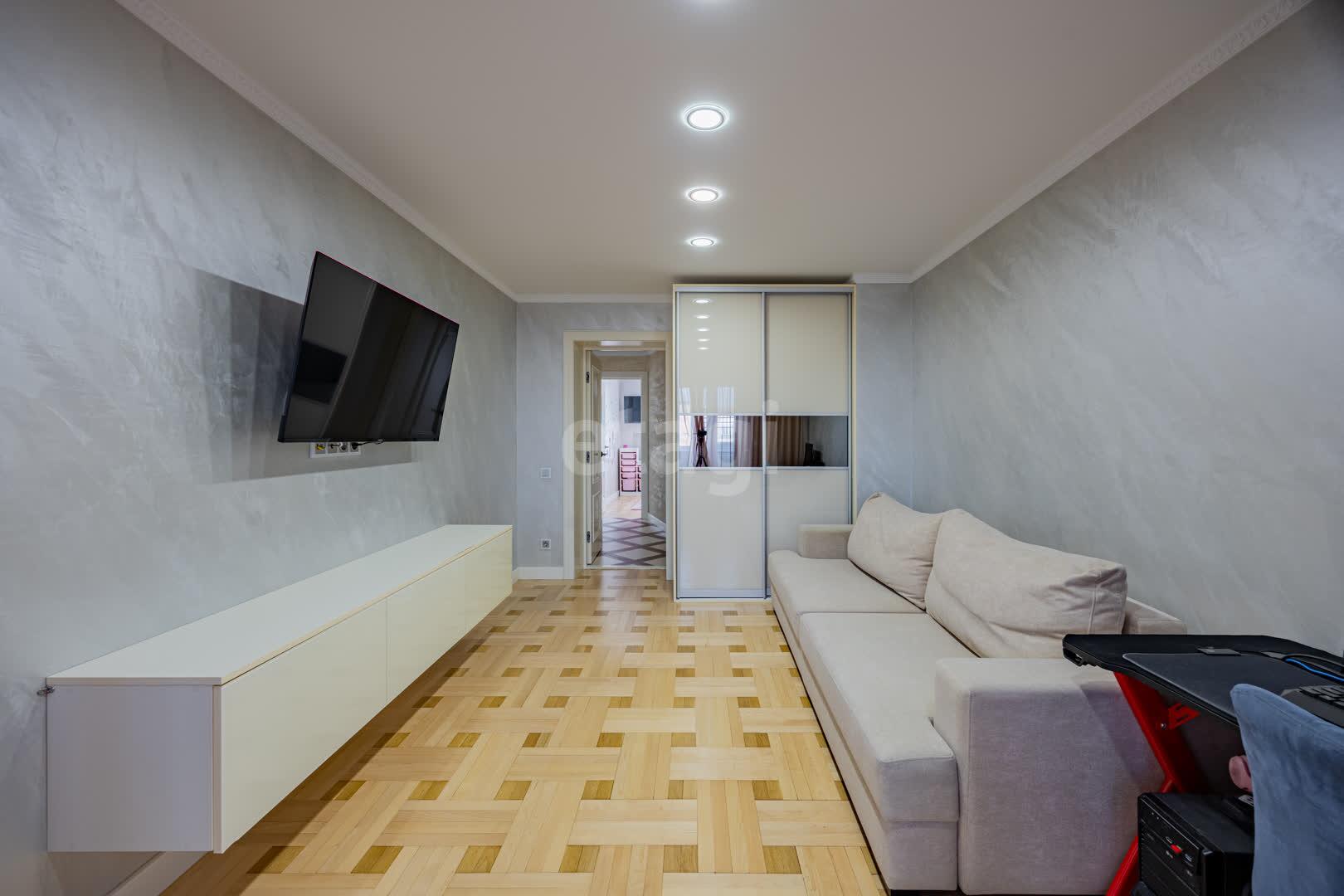Кухня(13.9 м2: Просторная зона для семейных ужинов). Установлен кухонный гарнитур из МДФ со встроенной техникой «BOSСH», а рабочая зона укомплектована долговечной каменной столешницей и столешница из гранита. Система фильтрации воды. Для вашей безопасности установлена система аквастоп по квартире. С выходом на первую лоджию. Четыре комнаты: Гостиная/Зал (29,1 м2): Впечатляющий масштаб. Центром интерьера является роскошный диван Versace, подчеркивающий статус жилья, Светлая спальня(18,5 м2), Детская №1(13,3 м2), Детская №2/кабинет (13,4 . С выходом на вторую лоджию. Комфорт для семьи: Два санузла(1,7 и 9,8 м2) . Санузлы облицованы плиткой, установлена испанская сантехника Roca, бойлер на 80 литров. В вашем распоряжении полноценная гардеробная (4.6 м2), где с комфортом разместится весь семейный гардероб, и отдельная кладовая (1.6 м2) для бытовых мелочей, спортивного инвентаря или сезонных вещей. Вся мебель делалась под индивидуальный заказ. Премиальная Вся мебель в доме выполнена по индивидуальному заказу: каждая деталь, от фасадов до фурнитуры, подбиралась с безупречным вкусом и вниманием к эргономике. Это позволило идеально использовать каждый сантиметр пространства, создав гармоничный и единый стиль, который невозможно повторить. отделка: Стены украшает изысканная венецианская штукатурка, создающая неповторимую атмосферу. На полу — натуральный паркет, межкомнатные двери из массива. Особое внимание уделено деталям: по всему дому установлены надежные подоконники из каменного гранита. Полы: коридор и кухня - плитка, в комнатах - паркет.