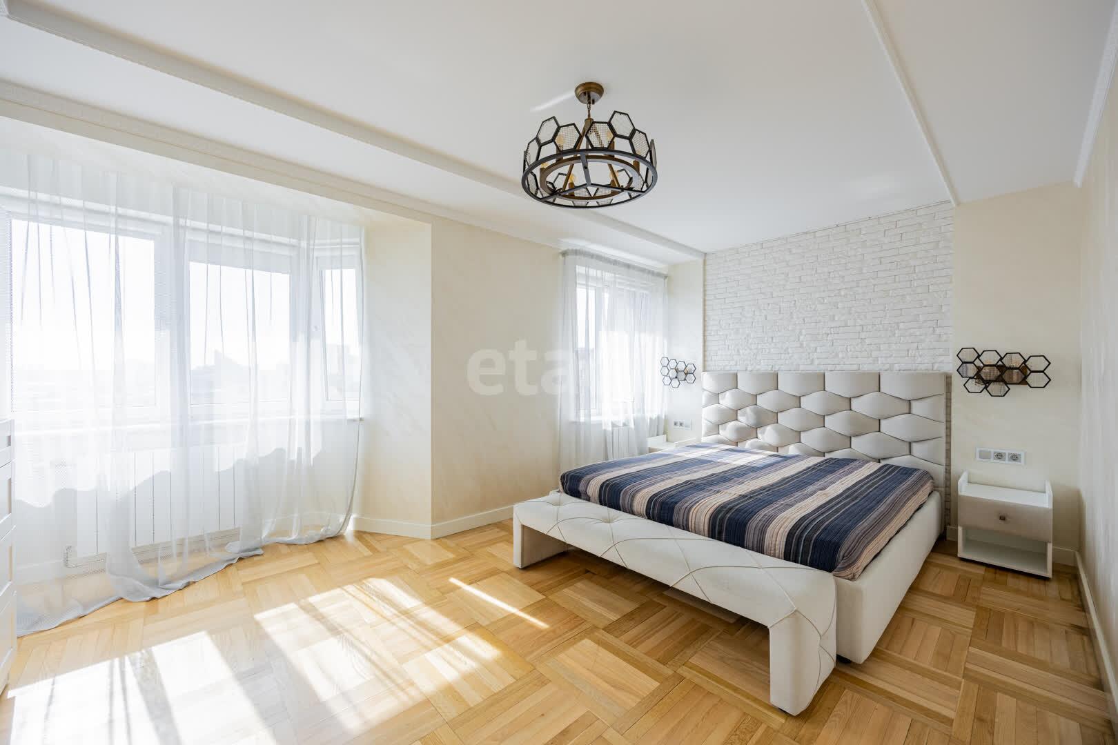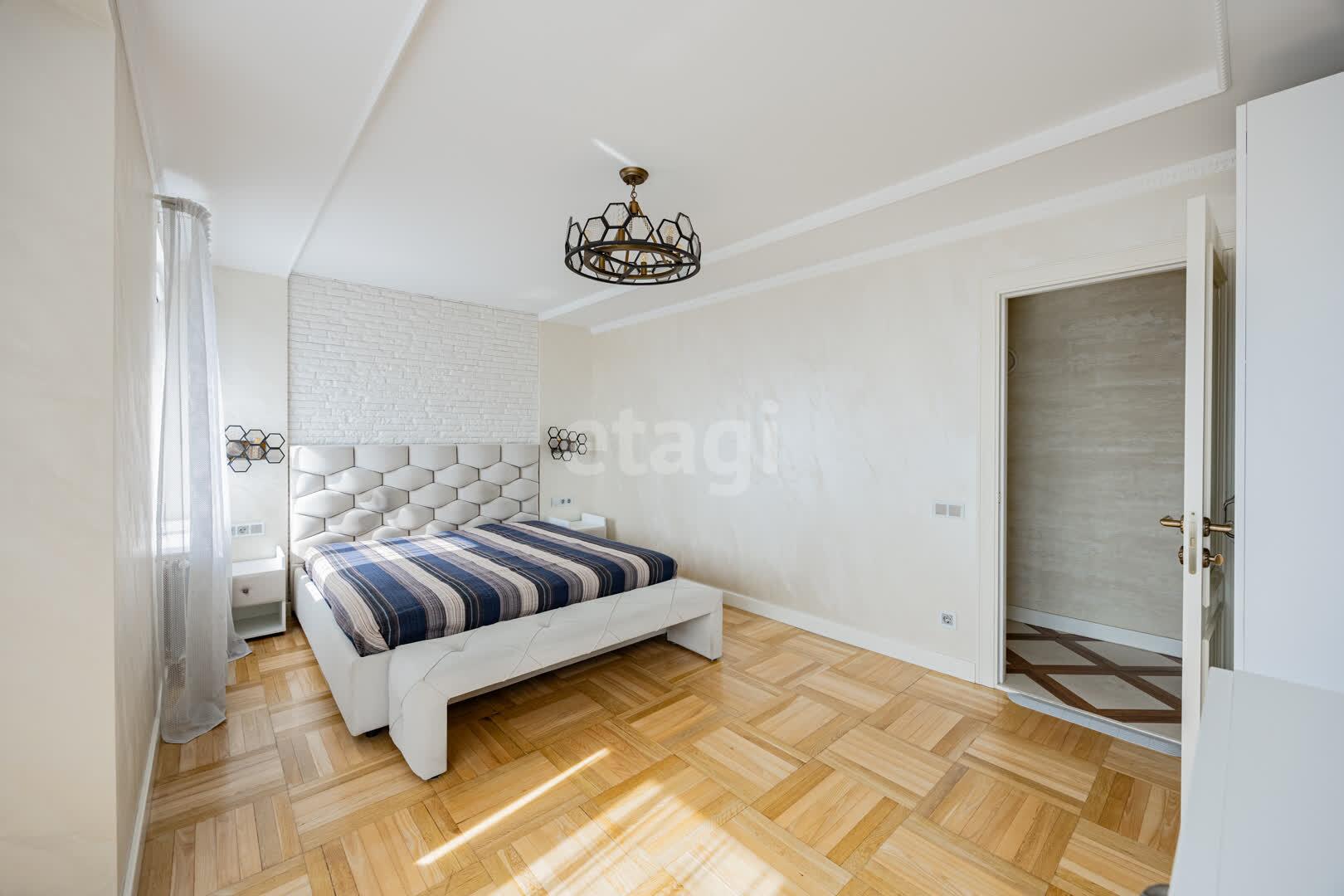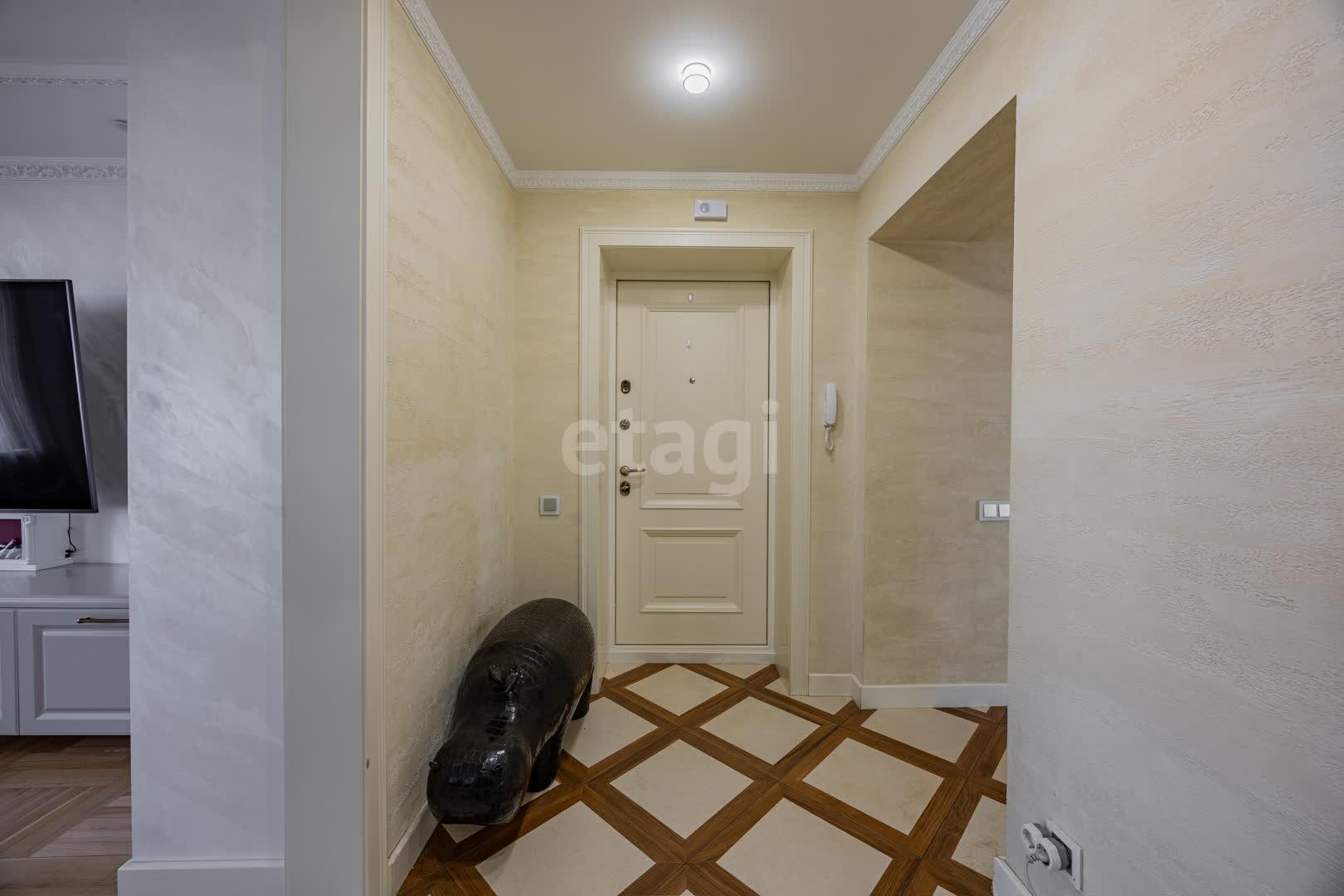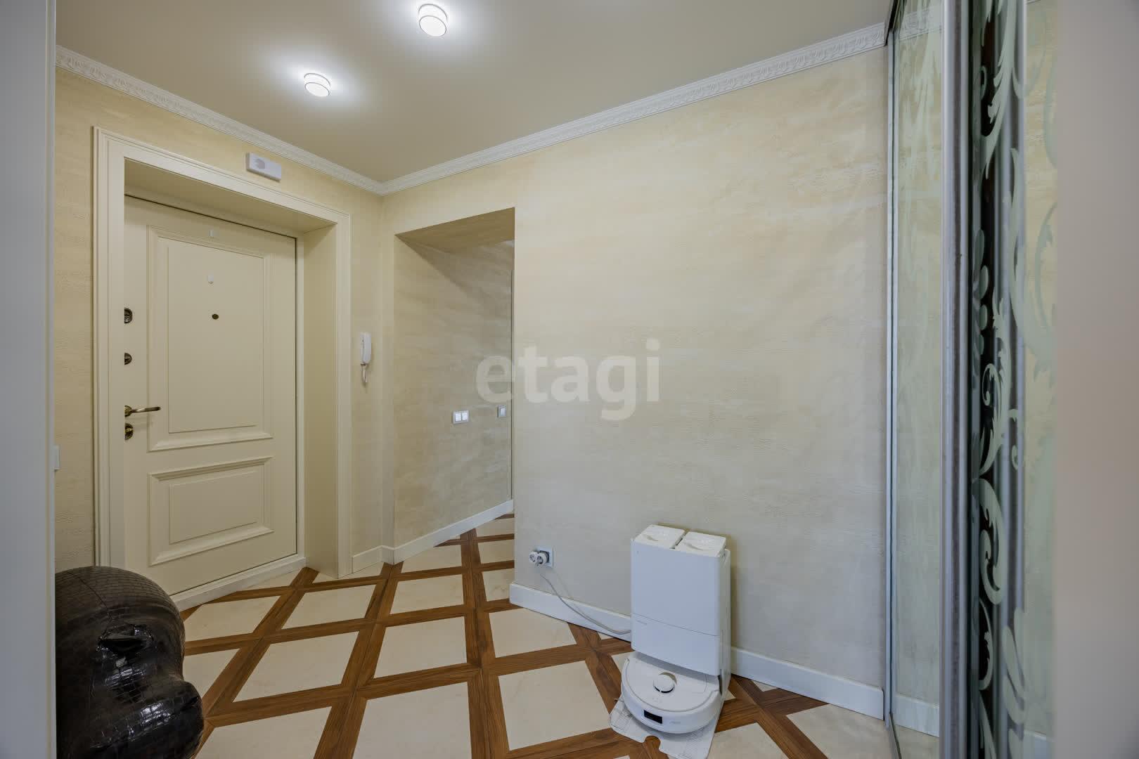 Кухня(13.9 м2: Просторная зона для семейных ужинов). Установлен кухонный гарнитур из МДФ со встроенной техникой «BOSСH», а рабочая зона укомплектована долговечной каменной столешницей и столешница из гранита. Система фильтрации воды. Для вашей безопасности установлена система аквастоп по квартире. С выходом на первую лоджию. Четыре комнаты: Гостиная/Зал (29,1 м2): Впечатляющий масштаб. Центром интерьера является роскошный диван Versace, подчеркивающий статус жилья, Светлая спальня(18,5 м2), Детская №1(13,3 м2), Детская №2/кабинет (13,4 . С выходом на вторую лоджию. Комфорт для семьи: Два санузла(1,7 и 9,8 м2) . Санузлы облицованы плиткой, установлена испанская сантехника Roca, бойлер на 80 литров. В вашем распоряжении полноценная гардеробная (4.6 м2), где с комфортом разместится весь семейный гардероб, и отдельная кладовая (1.6 м2) для бытовых мелочей, спортивного инвентаря или сезонных вещей. Вся мебель делалась под индивидуальный заказ. Премиальная Вся мебель в доме выполнена по индивидуальному заказу: каждая деталь, от фасадов до фурнитуры, подбиралась с безупречным вкусом и вниманием к эргономике. Это позволило идеально использовать каждый сантиметр пространства, создав гармоничный и единый стиль, который невозможно повторить. отделка: Стены украшает изысканная венецианская штукатурка, создающая неповторимую атмосферу. На полу — натуральный паркет, межкомнатные двери из массива. Особое внимание уделено деталям: по всему дому установлены надежные подоконники из каменного гранита. Полы: коридор и кухня - плитка, в комнатах - паркет.