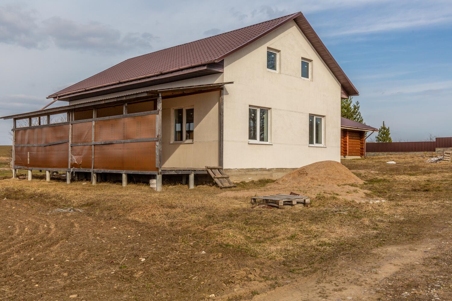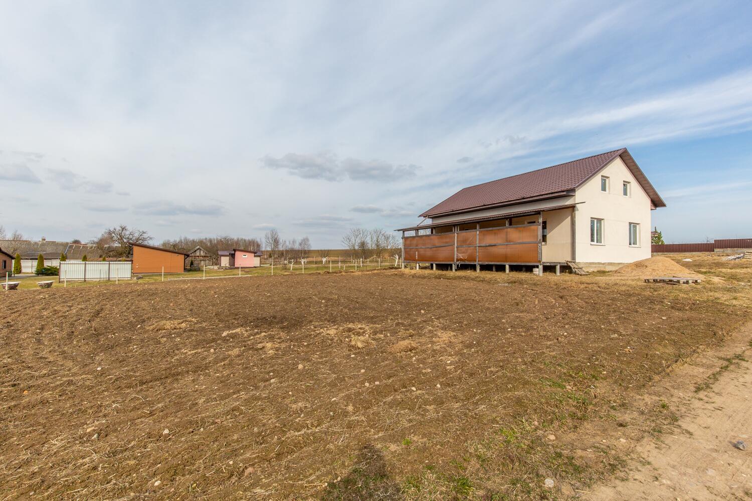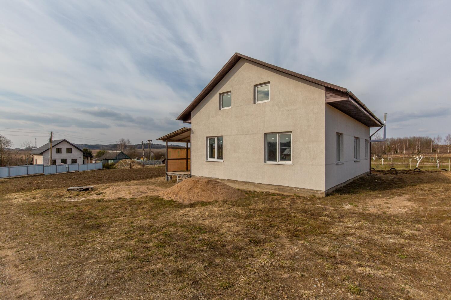 Продам просторный двухэтажный блочный дом 35 км от Минска! Объект законсервирован, по документам — 56% готовности, что позволяет новым владельцам завершить строительство по своему вкусу и предпочтениям. Площадь только первого этажа дома 84,1 кв.м., высота потолков 2.85 м. На первом этаже три комнаты, кухня и санузел. Второй этаж по периметру первого и в указанную площадь не входит! Дом оштукатурен. Глубокий фундамент 1,2 м. Дом изготовлен из блока 400 мм. Расположен на ровном, разработанном участке, на возвышенности относительно других участков. Площадь участка 25 соток. Правовой статус участка «пожизненно наследуемое владение». В доме установлены пластиковые окна, разведена электрика. Крыша – металлочерепица. На первом этаже уложен теплый пол, установлены батареи и разведена электрика. Центральный водопровод. Газ, вода и электричество (220 и 380 вольт) введены в дом. Местная канализация на три кольца. Рядом с домом колодец и колонка. До дома асфальтированная дорога, которая в зимний период регулярно чистится. Отличные соседи.