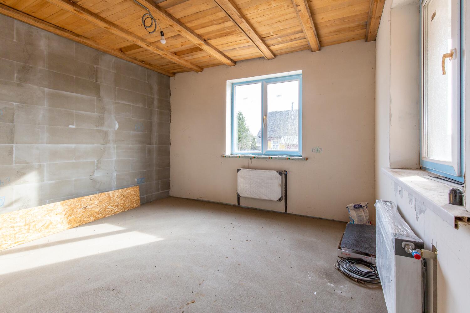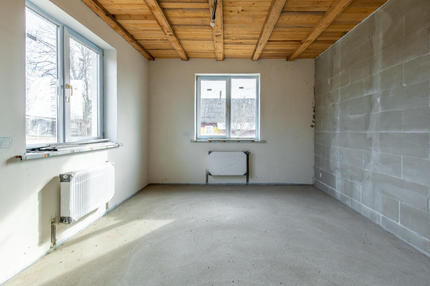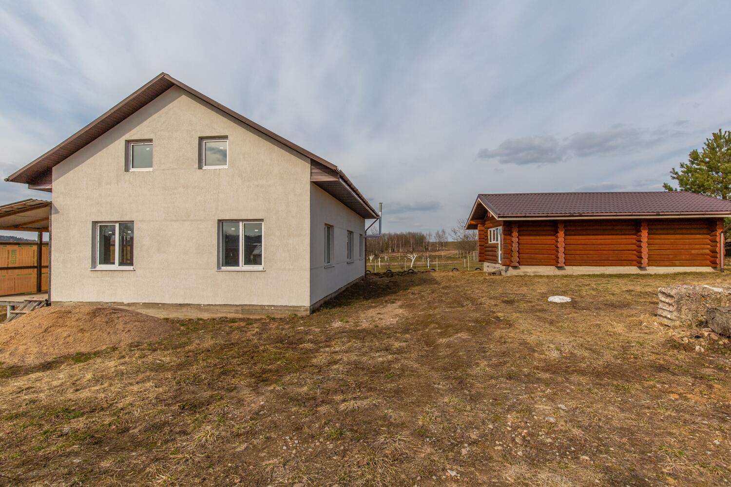 Продам просторный двухэтажный блочный дом 35 км от Минска! Объект законсервирован, по документам — 56% готовности, что позволяет новым владельцам завершить строительство по своему вкусу и предпочтениям. Площадь только первого этажа дома 84,1 кв.м., высота потолков 2.85 м. На первом этаже три комнаты, кухня и санузел. Второй этаж по периметру первого и в указанную площадь не входит! Дом оштукатурен. Глубокий фундамент 1,2 м. Дом изготовлен из блока 400 мм. Расположен на ровном, разработанном участке, на возвышенности относительно других участков. Площадь участка 25 соток. Правовой статус участка «пожизненно наследуемое владение». В доме установлены пластиковые окна, разведена электрика. Крыша – металлочерепица. На первом этаже уложен теплый пол, установлены батареи и разведена электрика. Центральный водопровод. Газ, вода и электричество (220 и 380 вольт) введены в дом. Местная канализация на три кольца. Рядом с домом колодец и колонка. До дома асфальтированная дорога, которая в зимний период регулярно чистится. Отличные соседи.