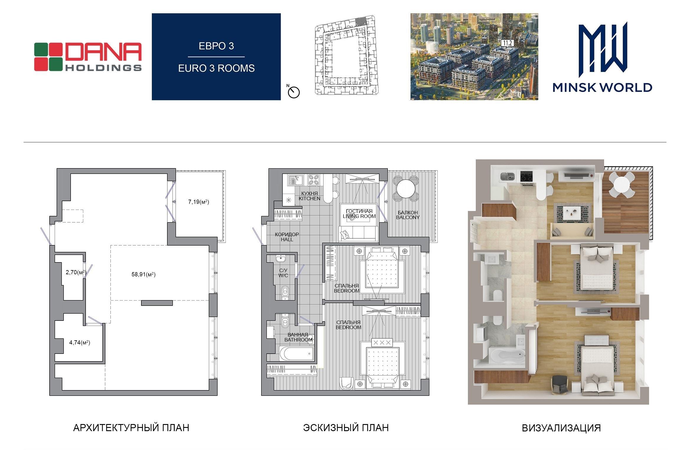 КЦИЯ -5%. Работаем напрямую от застройщика по партнерской программе (без комиссий)!!! Цены и наличие на 26.03.2026 г. Продадим Вашу квартиру для покупки этой! Стать владельцем квартиры в Minsk World можно: 1. За собственные средства 2. Кредит от 6%. 3. В рассрочку без справок и поручителей (только паспорт!) Все дома в комплексе каркасно-блочные. Скоростные бесшумные лифты импортного...