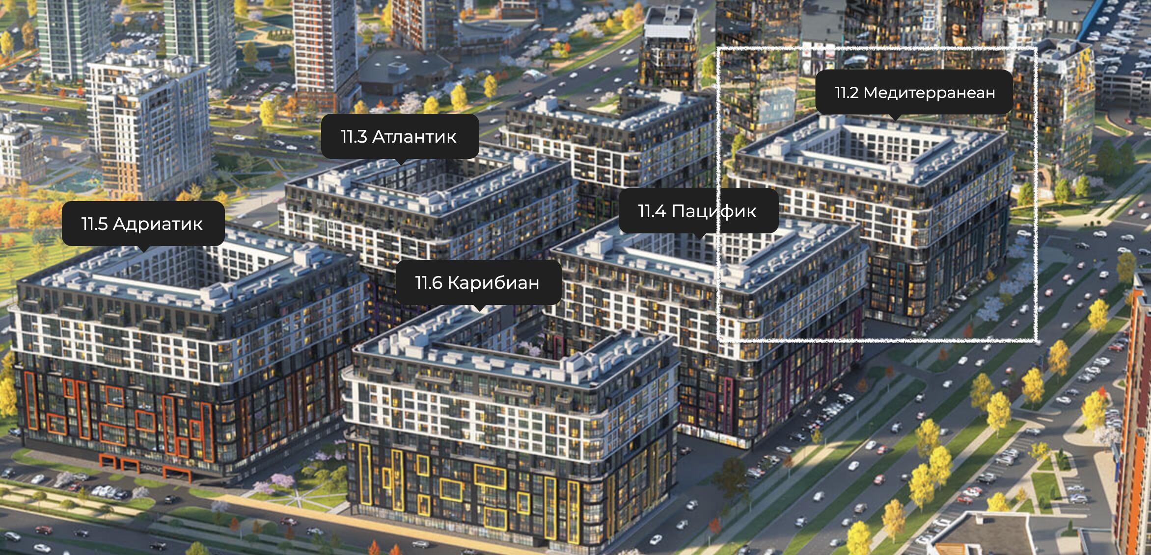 Локация: Квартал «Средиземноморский». Квартиры: Апартаменты свободной планировки с возможностью объединения, высокими потолками и панорамным остеклением. Инфраструктура квартала: Предусмотрены детские сады, школа, спортивные площадки, закрытые дворовые территории, зоны отдыха. Особенности: Дизайнерское лобби с местом для консьержа, зонами отдыха и санитарной комнатой. В доме предусмотрены панорамные лифты. Доступность: В наличии варианты покупки, включая рассрочку от застройщика и кредитные программы. Квартал «Средиземноморский» — это часть масштабного проекта, возводимого по принципу «город в городе».