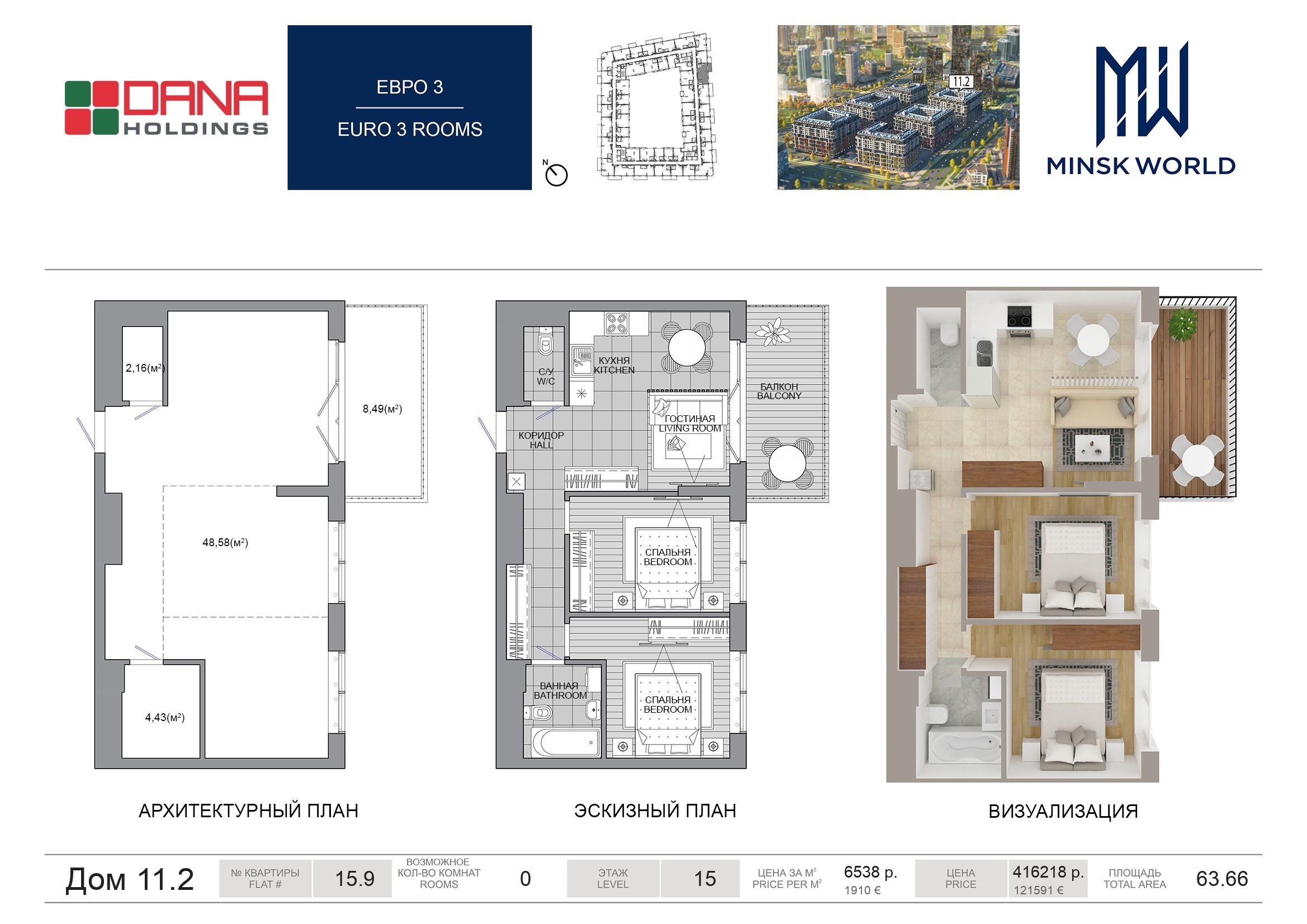 КЦИЯ -5%. Работаем напрямую от застройщика по партнерской программе (без комиссий)!!! Цены и наличие на 26.03.2026 г. Продадим Вашу квартиру для покупки этой! Стать владельцем квартиры в Minsk World можно: 1. За собственные средства 2. Кредит от 6%. 3. В рассрочку без справок и поручителей (только паспорт!) Все дома в комплексе каркасно-блочные. Скоростные бесшумные лифты импортного...