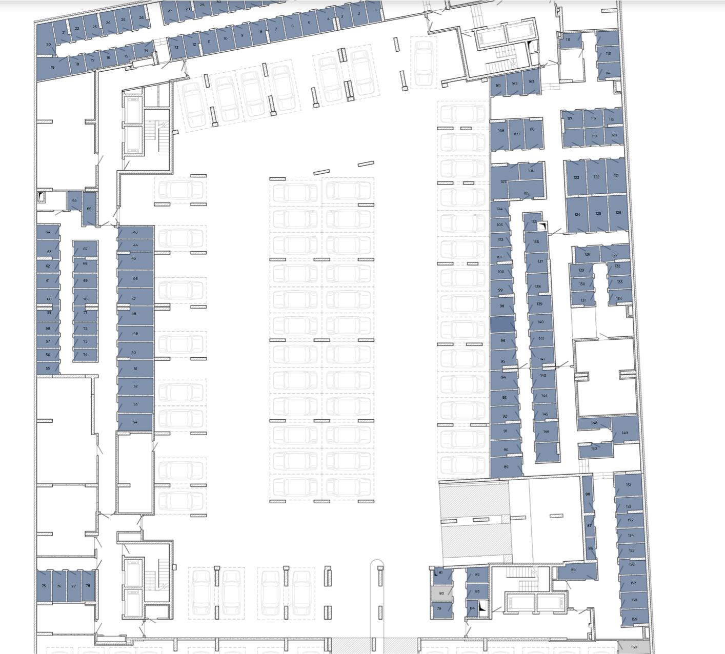- подземный двухуровневый паркинг на 239 машиномест с зарядными станциями для электромобилей;