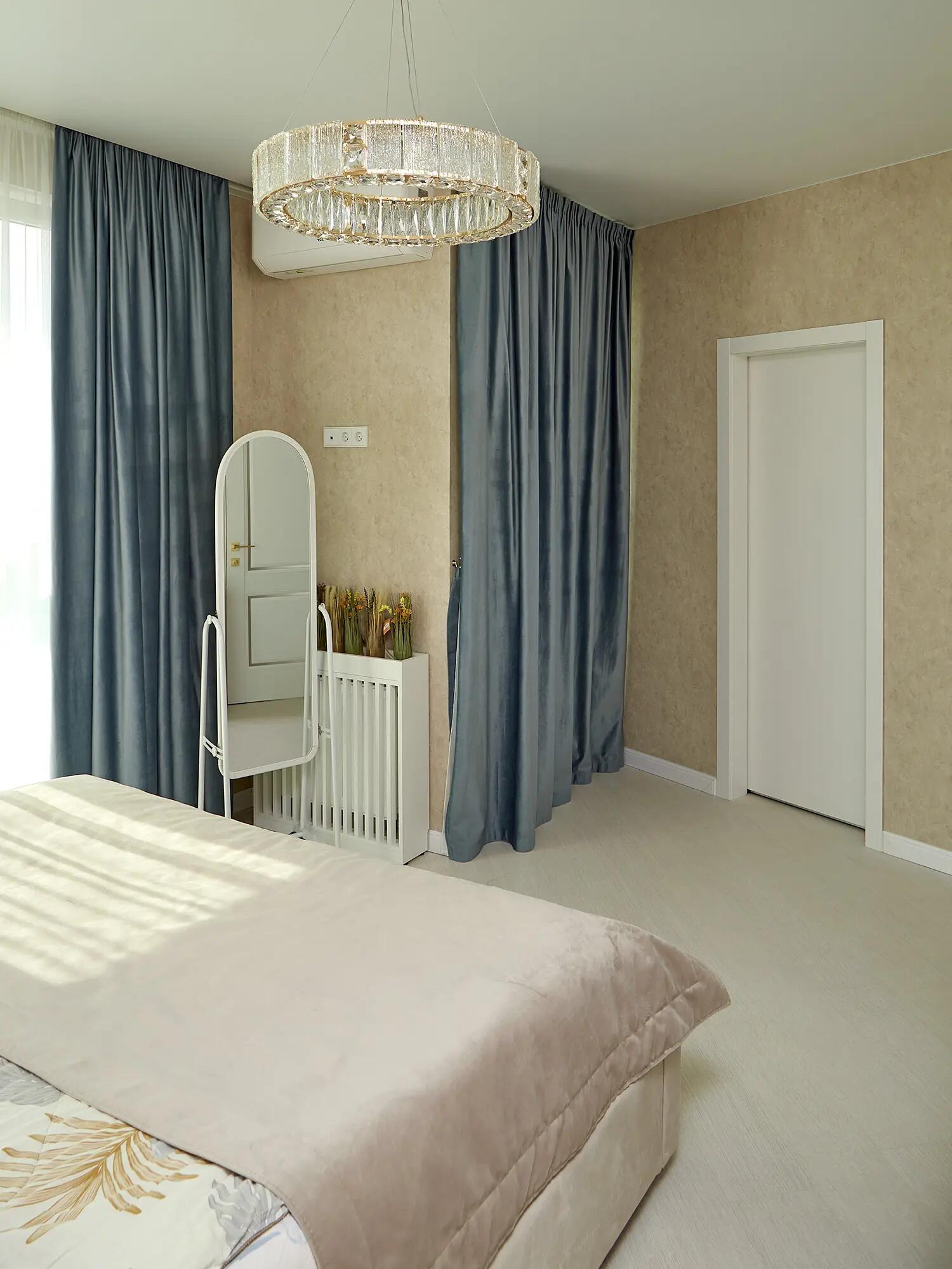Квартира имеет идеальную планировку – большая кухня/гостиная, 2 спальни, санузел с двумя выходами, большая гардеробная (очень важная и крайне редко встречающаяся опция).