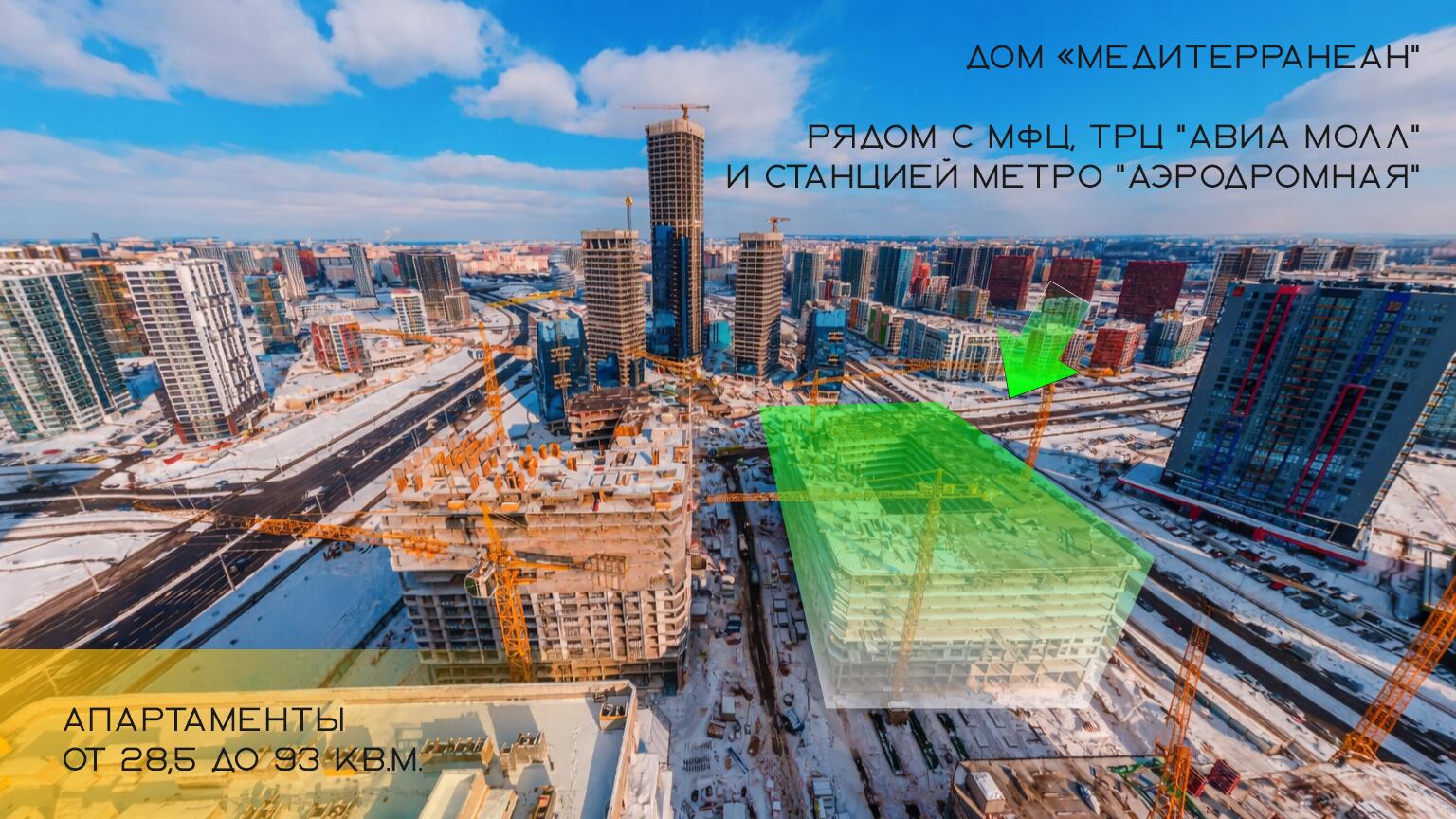 Лучшая локация: рядом с Международным финансовым центром, ТРЦ "Авиа Молл" и станцией метро "Аэродромная".Выгодные и удобные условия приобретения!- Собственными денежными средствами – 90% при заключении договора и 10% после сдачи дома в эксплуатацию!