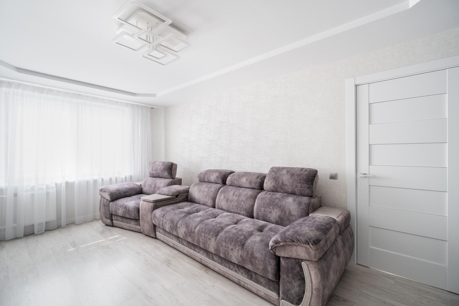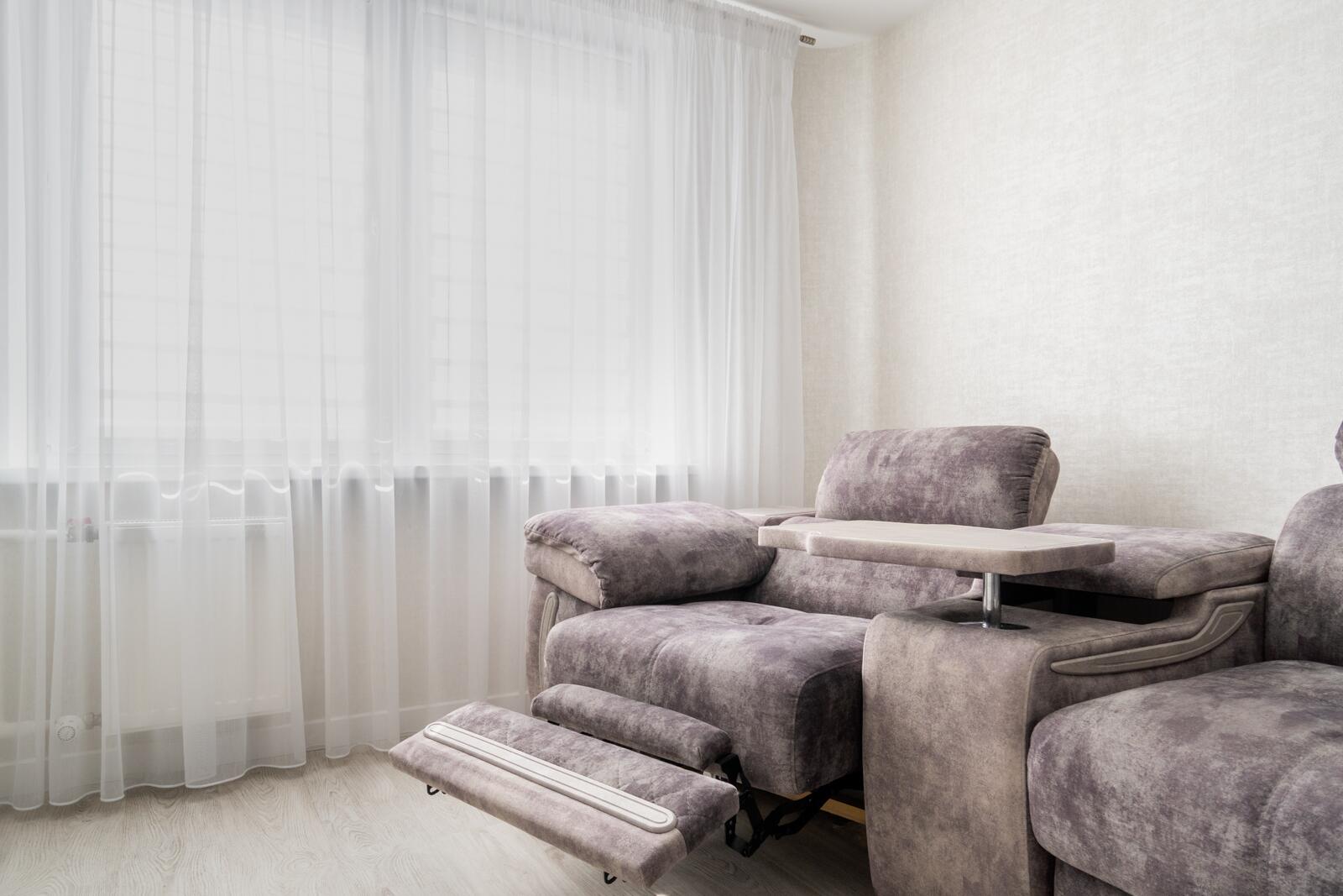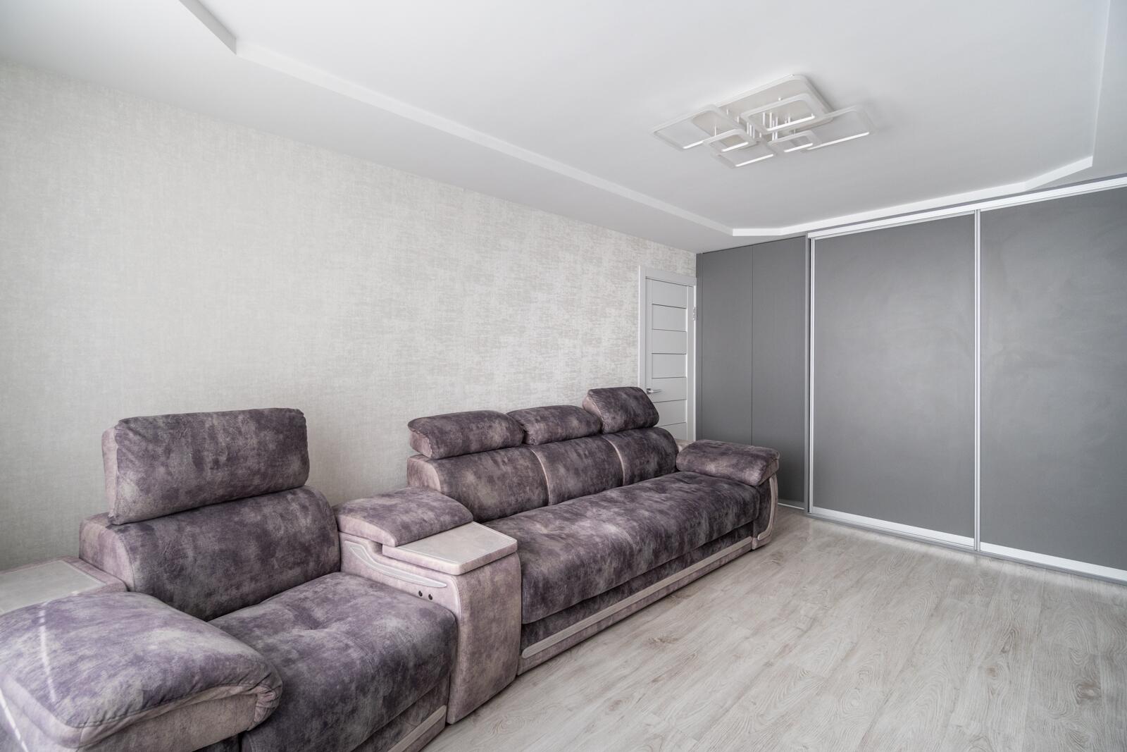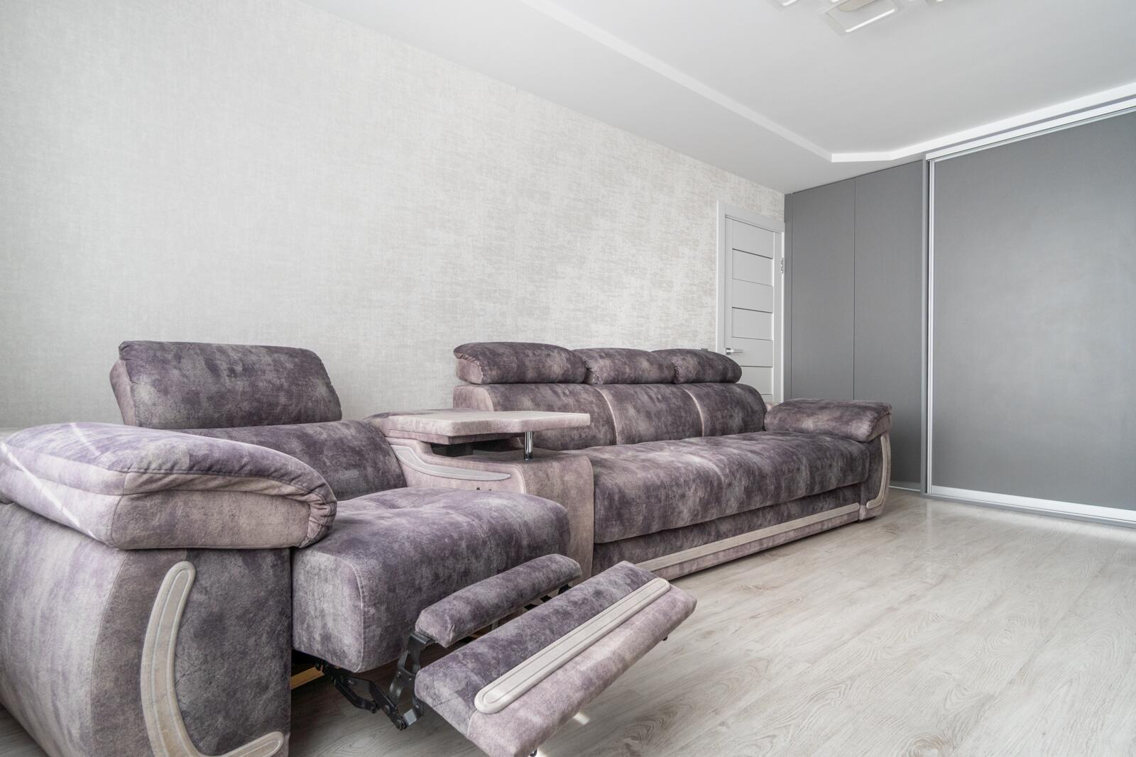 Центральный элемент — дорогой мягкий диван с реклайнером.Это полноценная зона отдыха: удобно смотреть фильмы, расслабляться после рабочего дня и проводить время с семьёй.