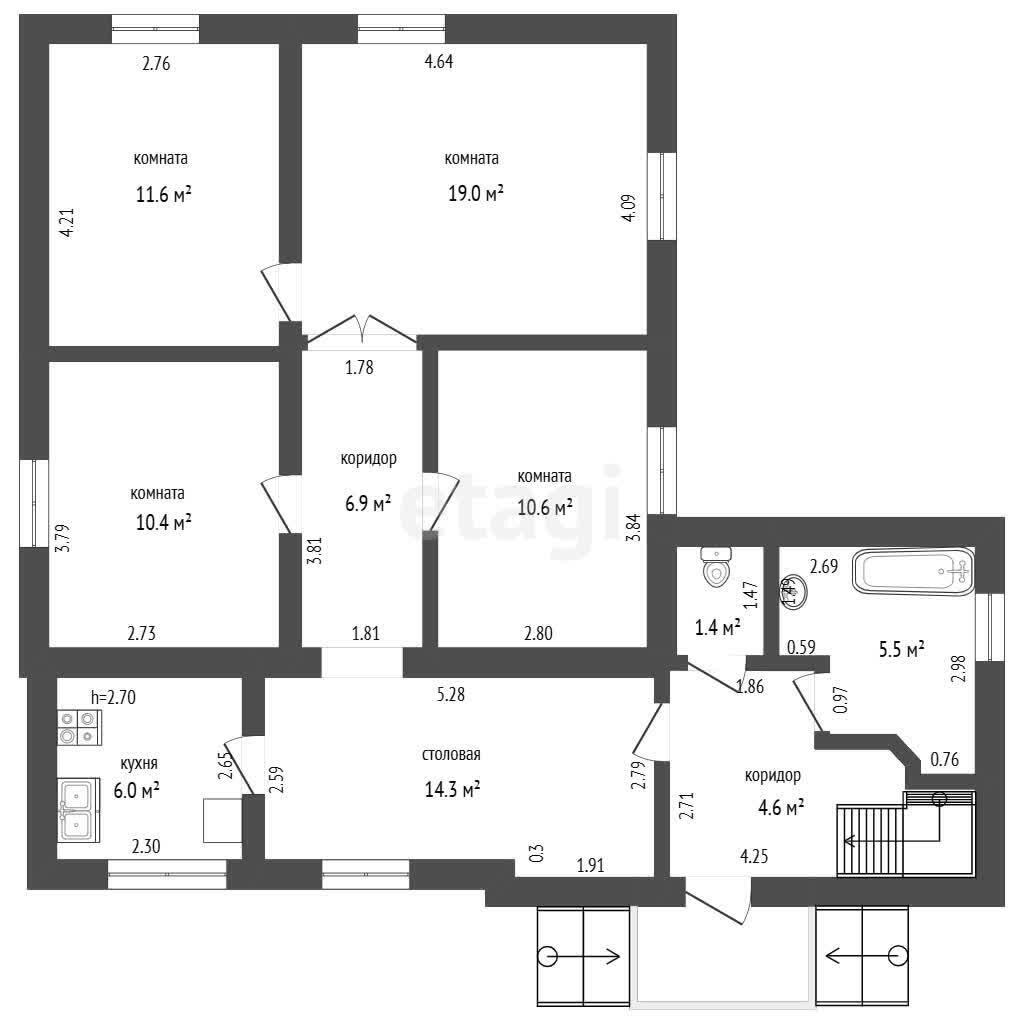 4 жилых комнаты – 10, 11, 12, 19м
