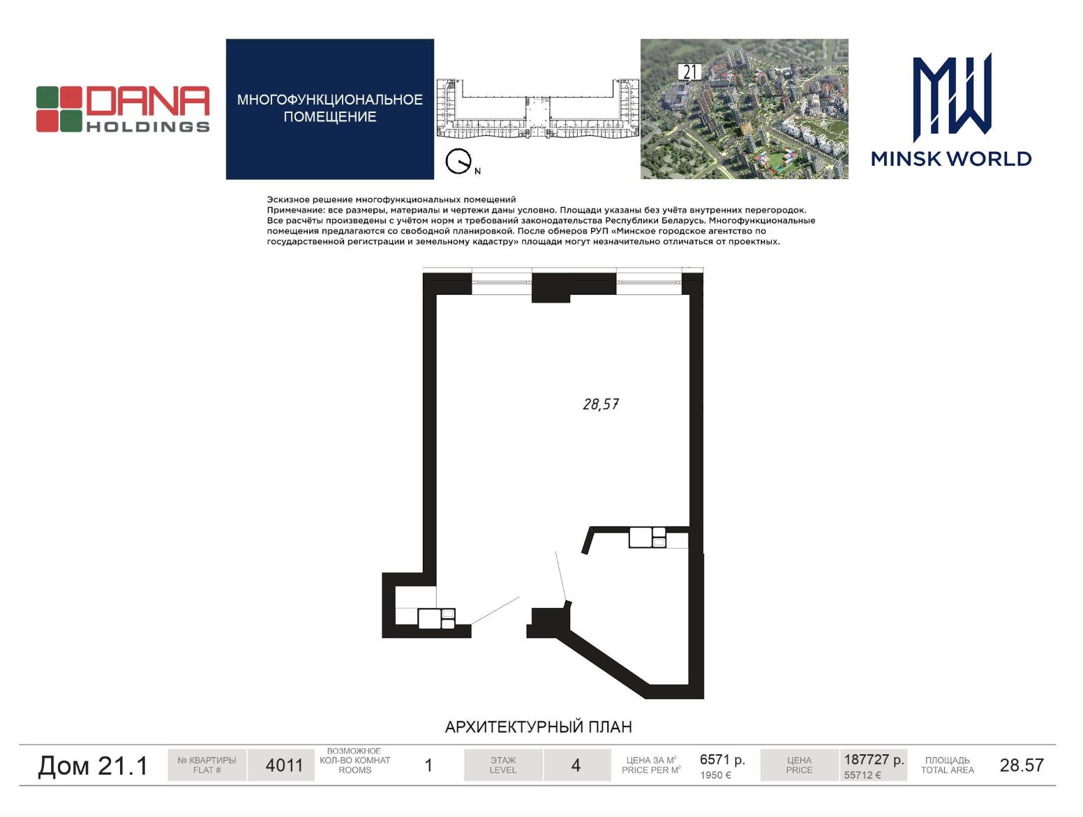 многофункциональные бизнес-апартаменты – многофункциональные помещения, позволяющие совмещать в себе функции проживания и ведения бизнеса, многоуровневый гараж-стоянка открытого типа; торговые помещения продовольственного супермаркета и гипермаркета непродовольственных товаров (в том числе, стройматериалов), помещения общественного питания; фитнес-центр и боулинг-клуб (на уровне 2 этажа); ФОК (спа-центр) в цокольном этаже; места общего пользования, в том числе, атриум центральной части здания; общественная зона на эксплуатируемой кровле с возможностью использования под летнее кафе (на уровне 3 этажа); административные помещения разного уровня комфорта (в том числе, для обсуживающего персонала торговых объектов); служебно-инженерные помещения: для персонала управления зданием, пожарный пост, пост охраны; иные служебные помещения инженерного назначения. - Многофункциональные бизнес-апартаменты представляют собой комплекс многофункциональных помещений (их общее количество – 374), предназначенных для проживания и ведения бизнеса. Они расположены на 2-7 этажах проектируемого здания. Высота каждого этажа (от пола до пола) = 3,3 м.