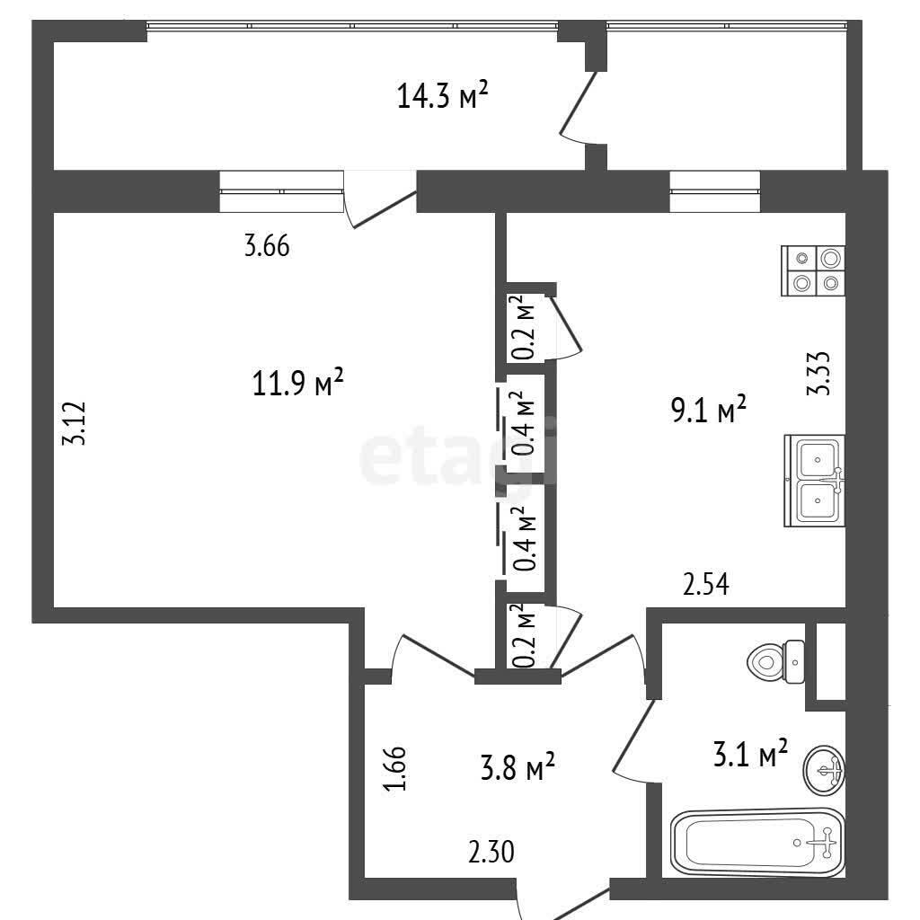· Удачная планировка: общая площадь по СНБ — 33,4 м2, жилая — 12,7 м2, кухня — 9,1 м2. Комната позволяет зонировать пространство, а просторная кухня — полноценно разместить обеденную зону.