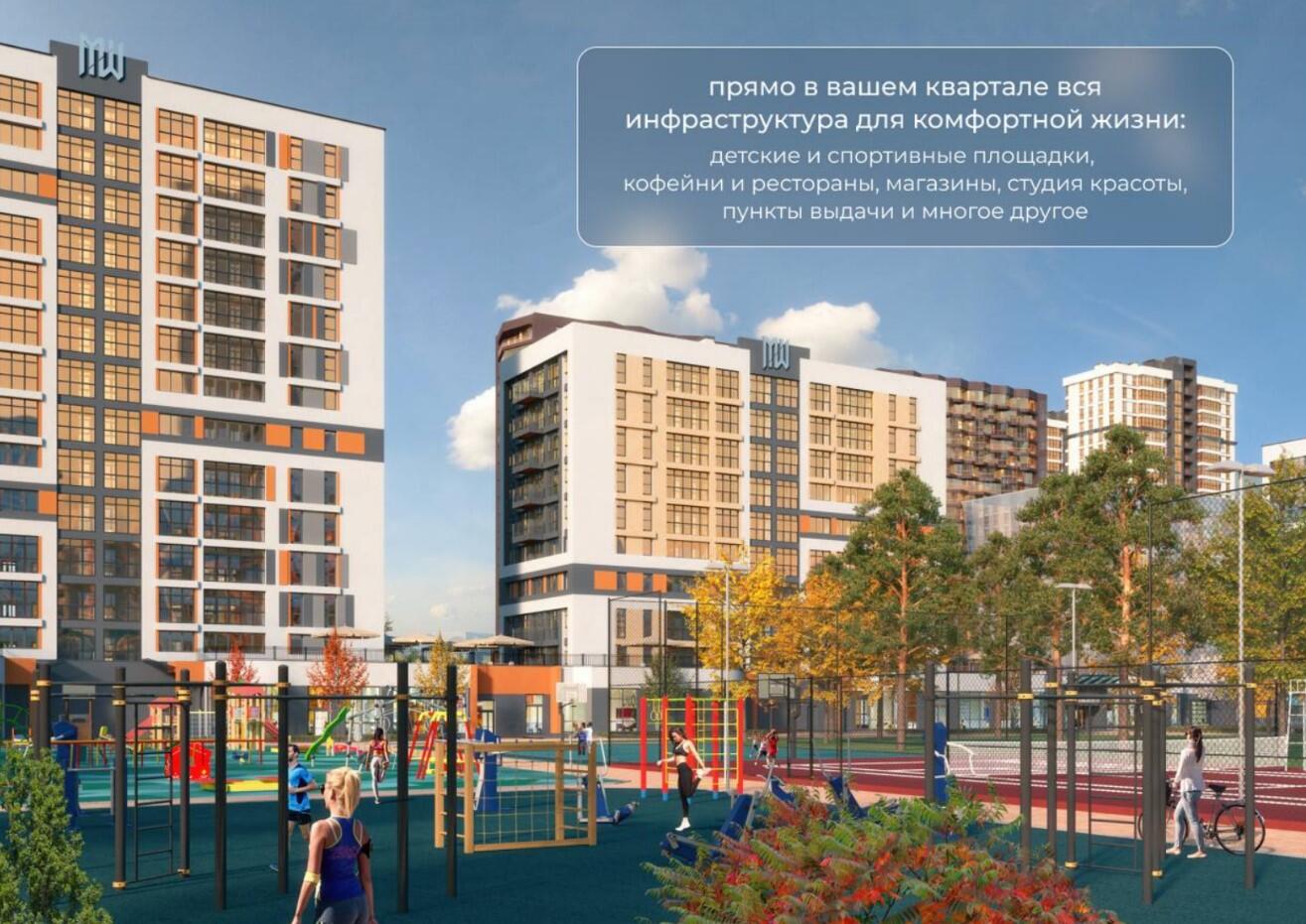 Спортивные площадки, вело парковки и благоустроенные дворы.