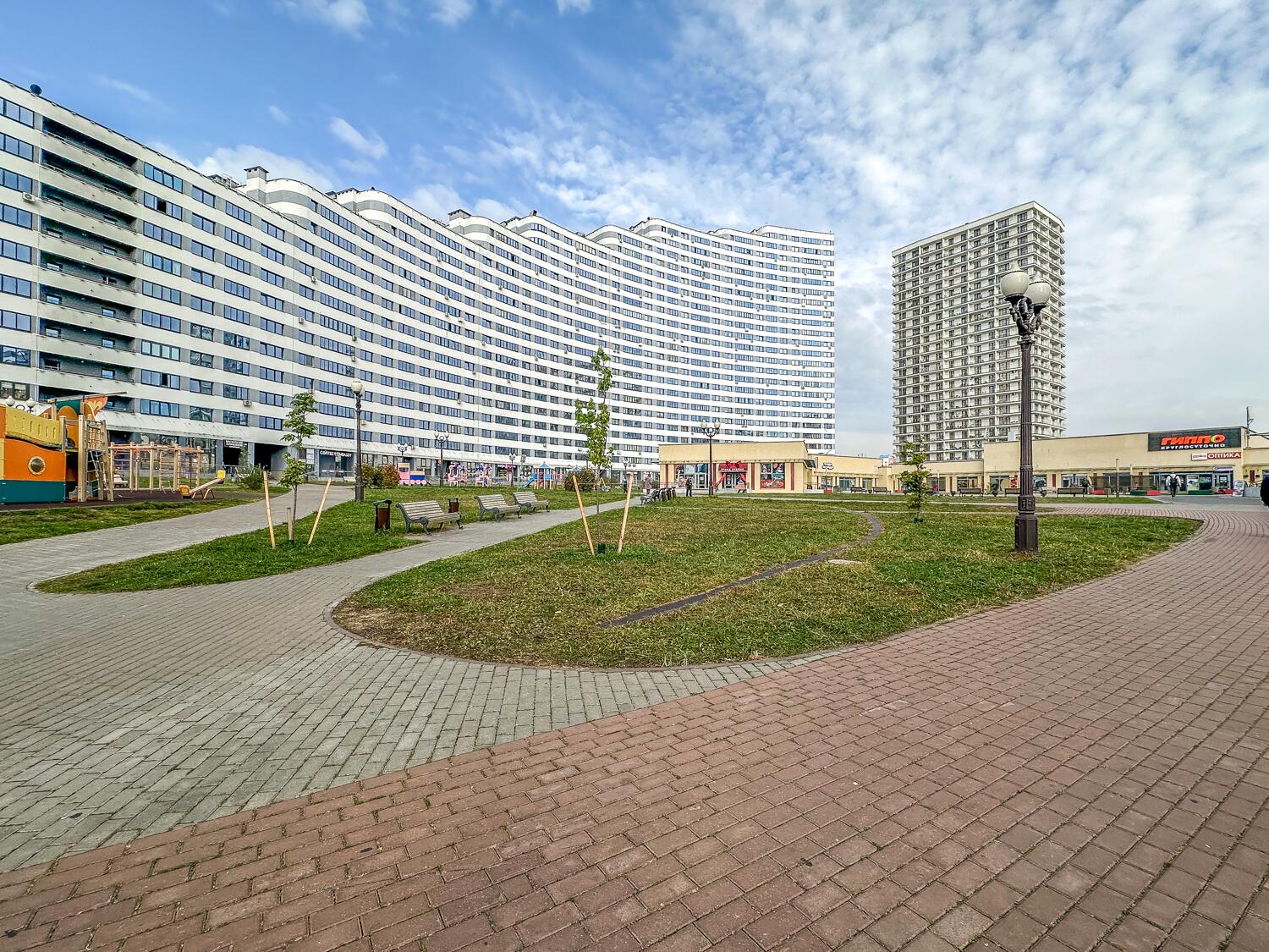 Во дворе большая детская площадка, сквер