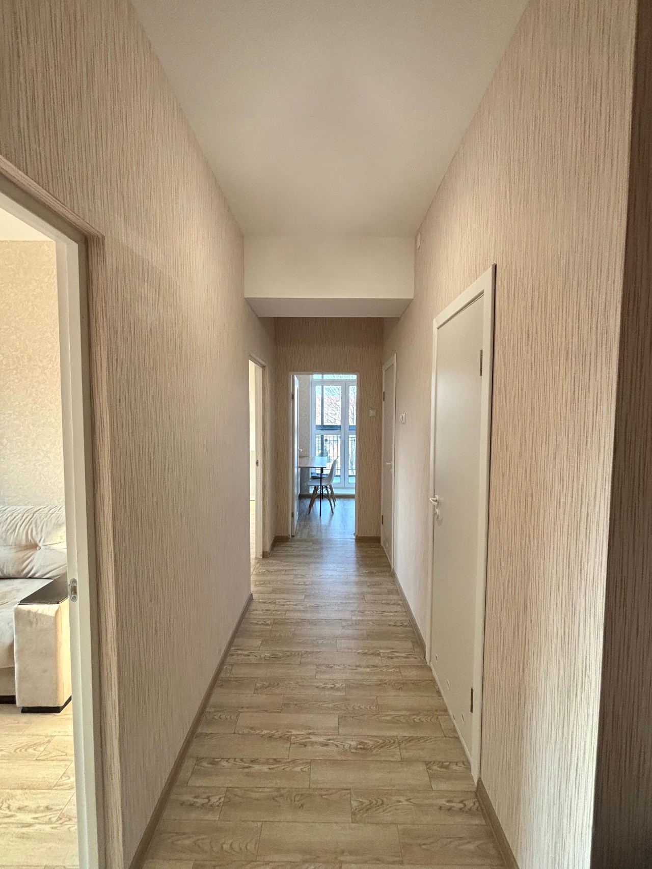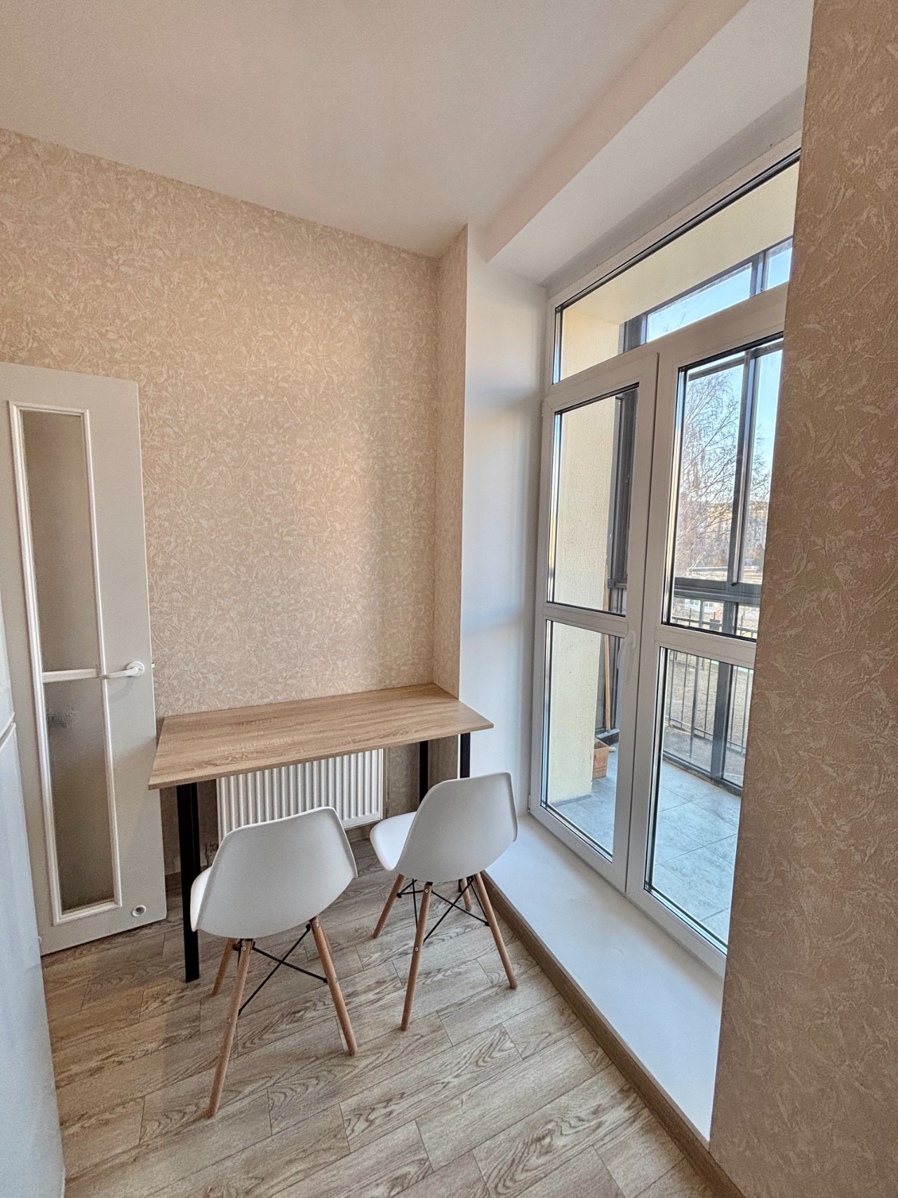 - Свет: Визитная карточка этой квартиры — панорамное окно с выходом на балкон на кухне. Это лучшее место для утреннего кофе или ужина с видом.