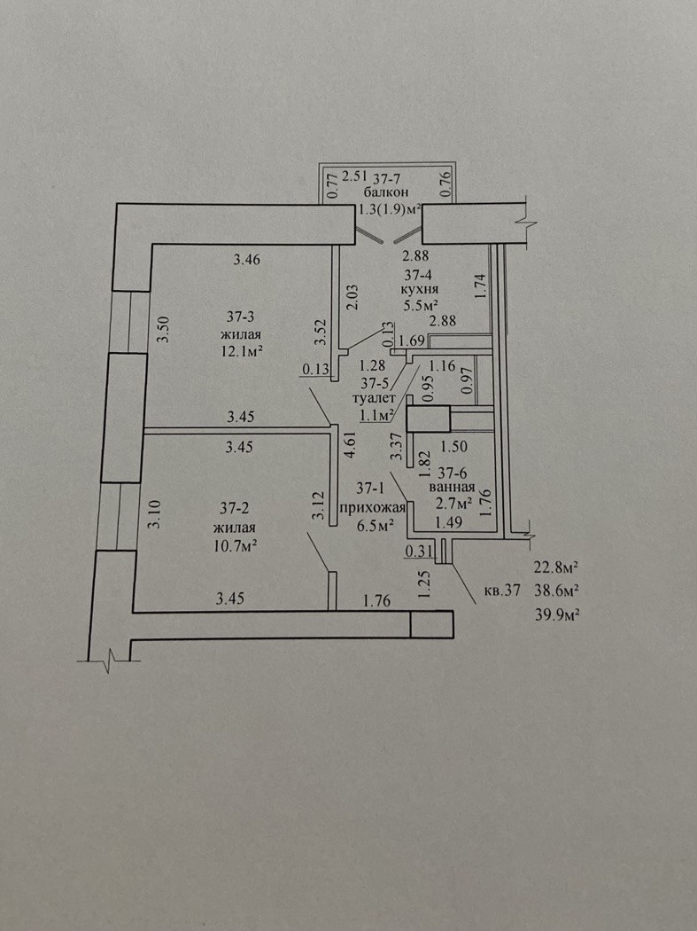- Простор: Площадь 39,9 м². Высокие потолки 2,8 м. создают ощущение воздуха и свободы.