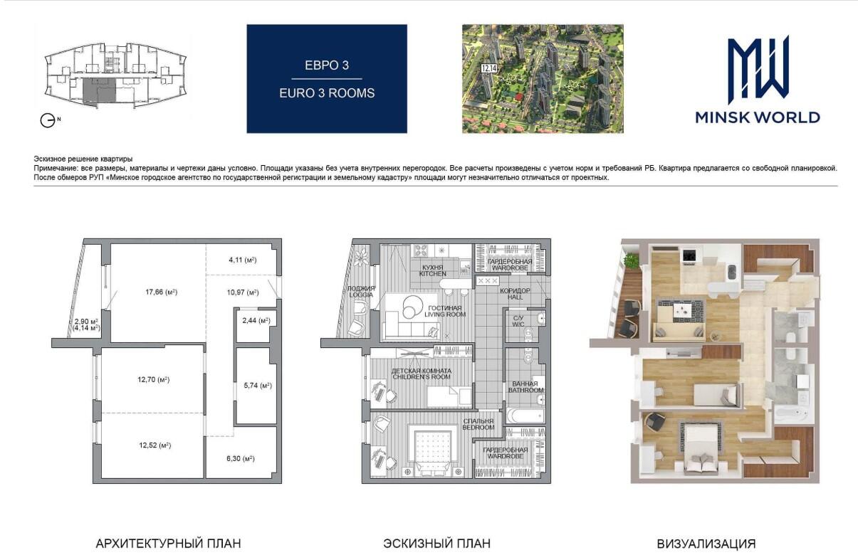 АКЦИЯ -5%. Работаем напрямую от застройщика по партнерской программе (без комиссий)!!! Цены и наличие на 26.03.2026 г. Продадим Вашу квартиру для покупки этой! Стать владельцем квартиры в Minsk World можно: 1. За собственные средства 2. Кредит от 6%. 3. В рассрочку без справок и поручителей (только паспорт!) Все дома в комплексе каркасно-блочные. Скоростные бесшумные лифты импортного...