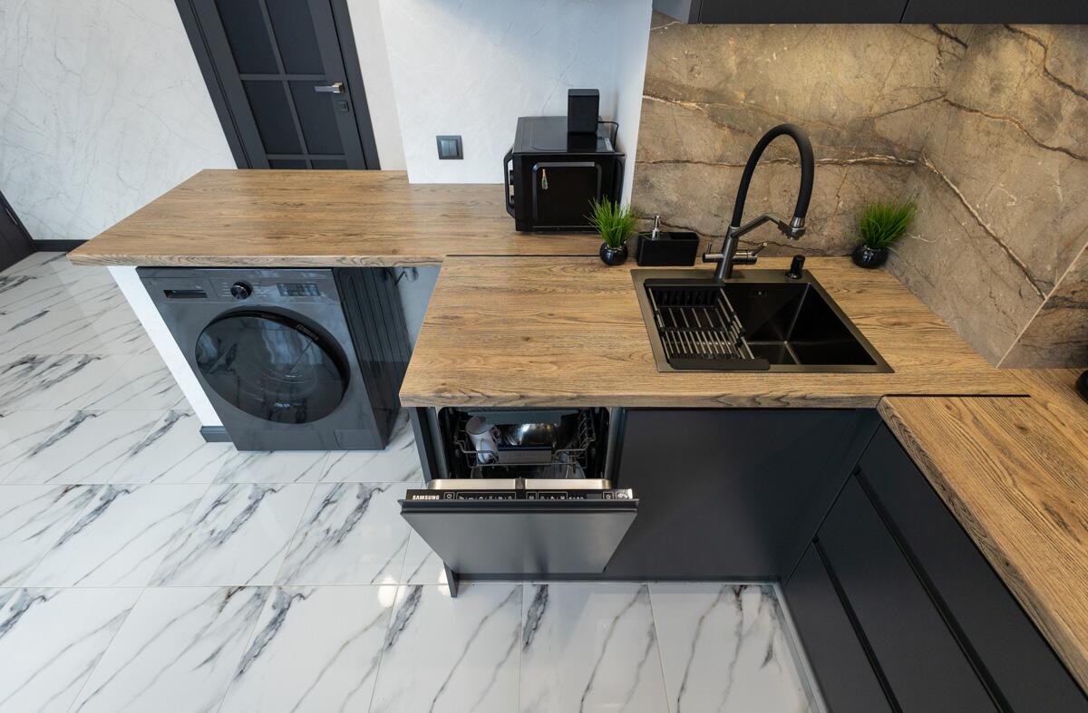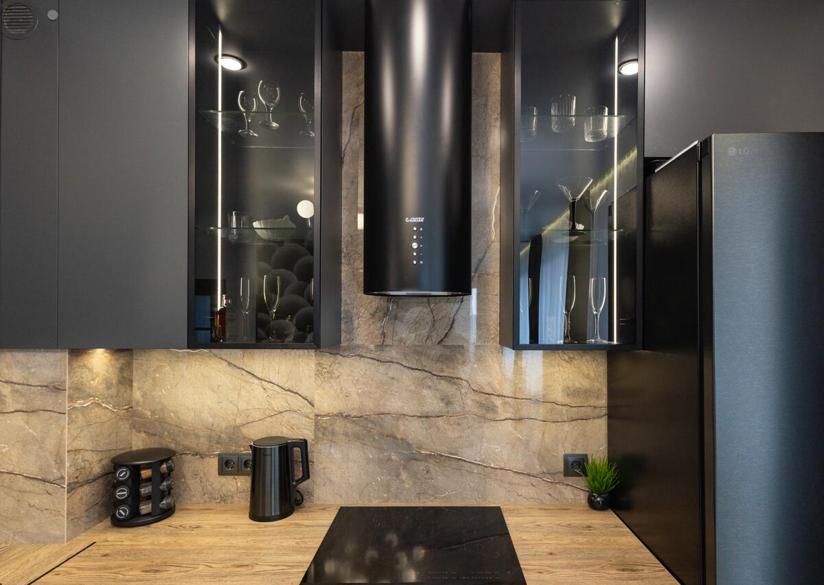 Отдельного внимания заслуживает кухонная зона – продуманная эргономика, индивидуальный проект, премиальная техника, качественная фурнитура., сделана естественная вентиляция!