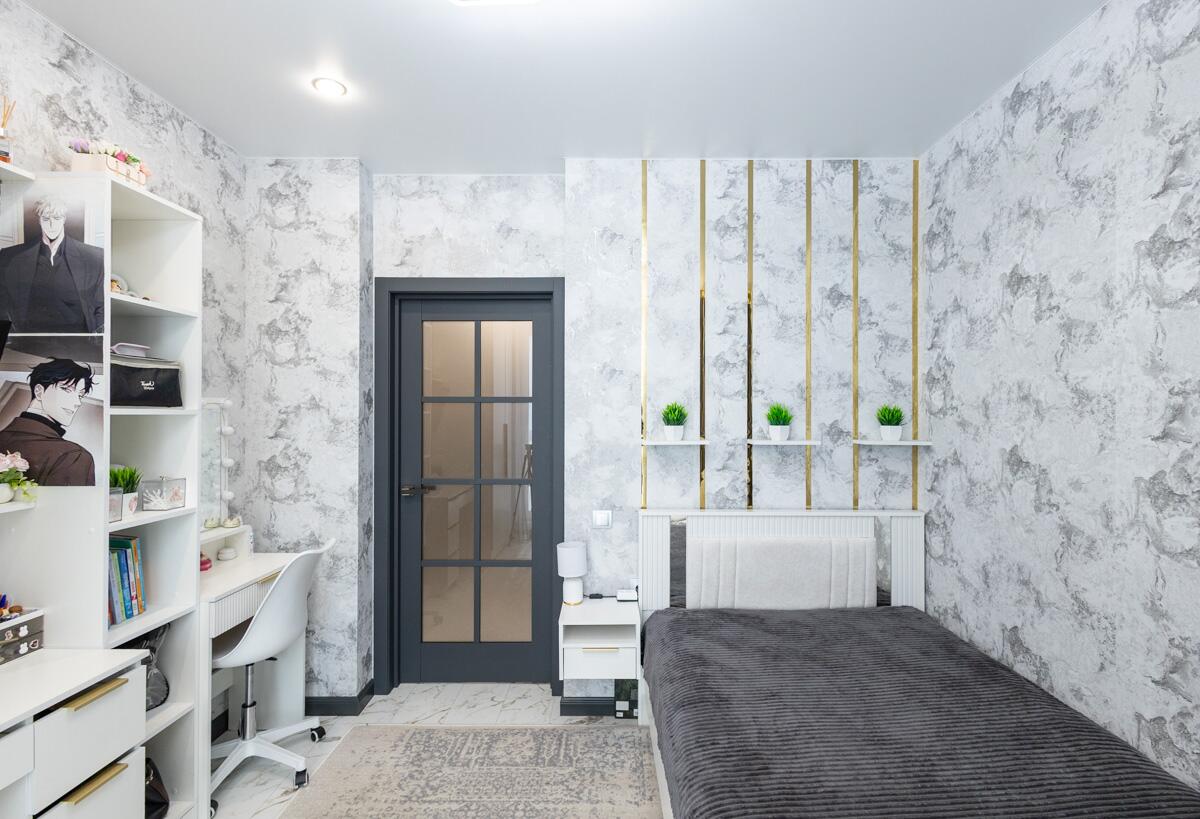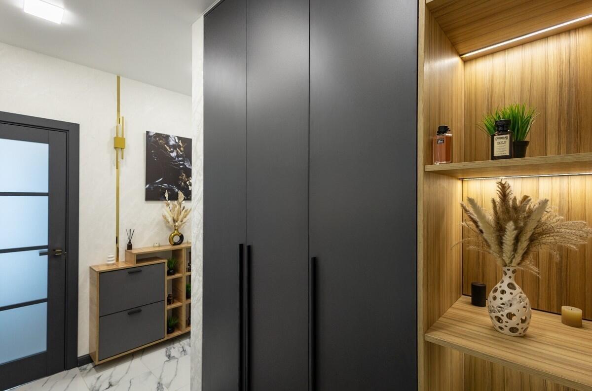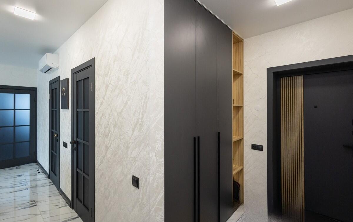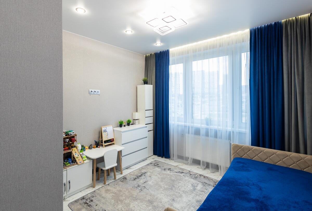 Собственник очень много вниманию уделил освещению – установлено много точек света в каждой комнате, в т.ч. дополнительно сделана качественная подсветка карнизов.